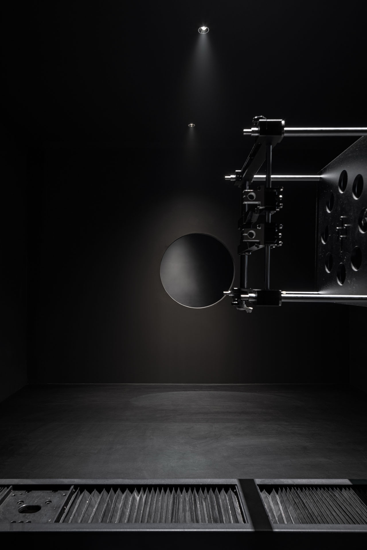 整个动线遵循 “远观→步入园景→参观门厅→品牌介绍→沉浸体验→沙龙活动→重点展示→签约→茶歇” 的完整链路,对应 “览光、觅光、戏光、品光、嗅光、沐光” 六个体验阶段。从主入口花园到二层水院,从展厅到实验室,我们把整个浏览的过程分成不同的时间切片,每一个切片都会有独立的展示场景和光影互动节点,让来访者在迂回中不断邂逅光的不同形态。此外,我们与艾罗团队深入讨论每个时间切片的时长和解说的文稿,整个游览过程中让品牌的核心业务自然的融入体验过程当中,不去刻意的探讨具体的产品,更多的是去强调氛围,落地与服务的体系,从而去建立双方同频的认知和信任。