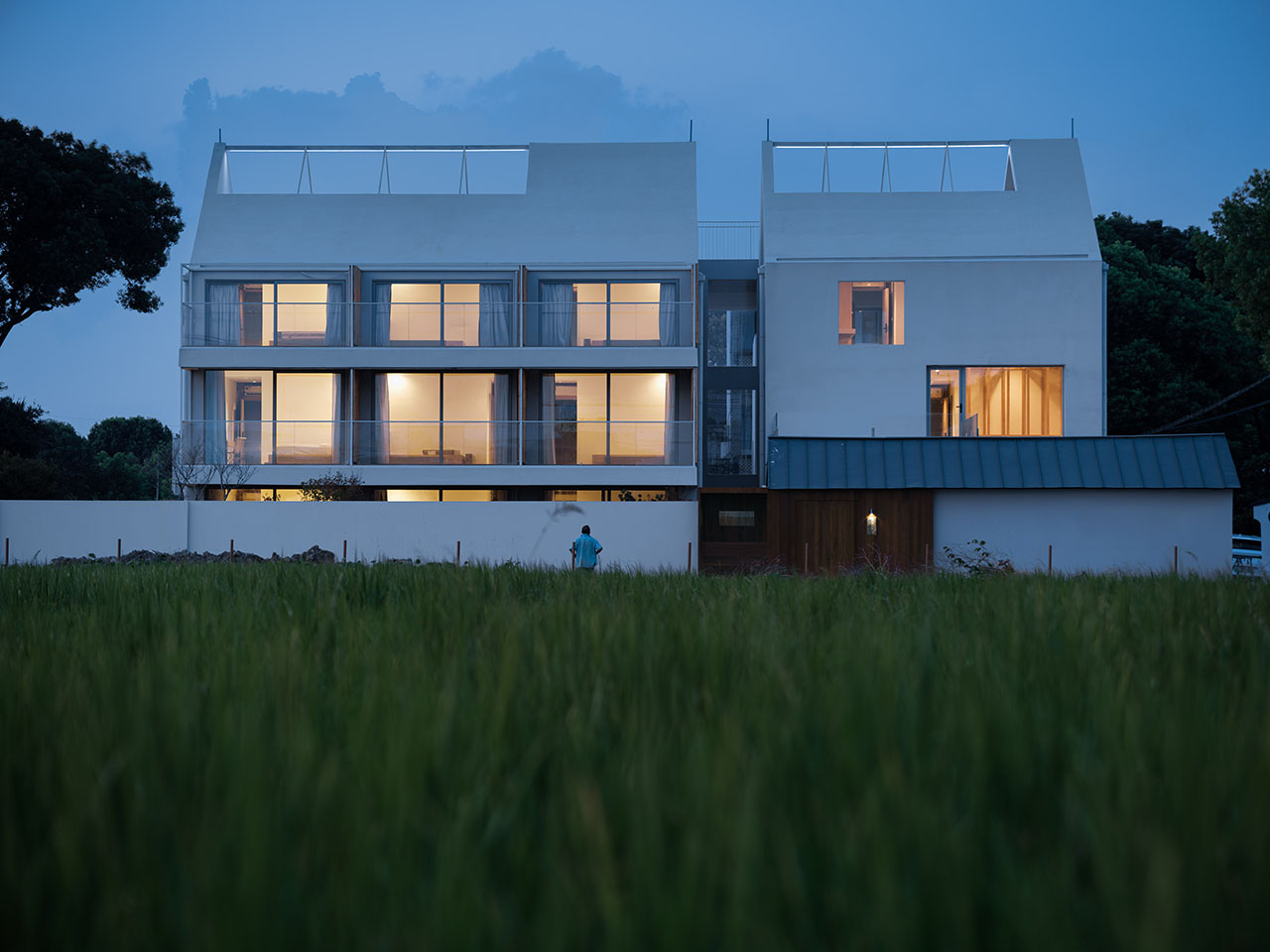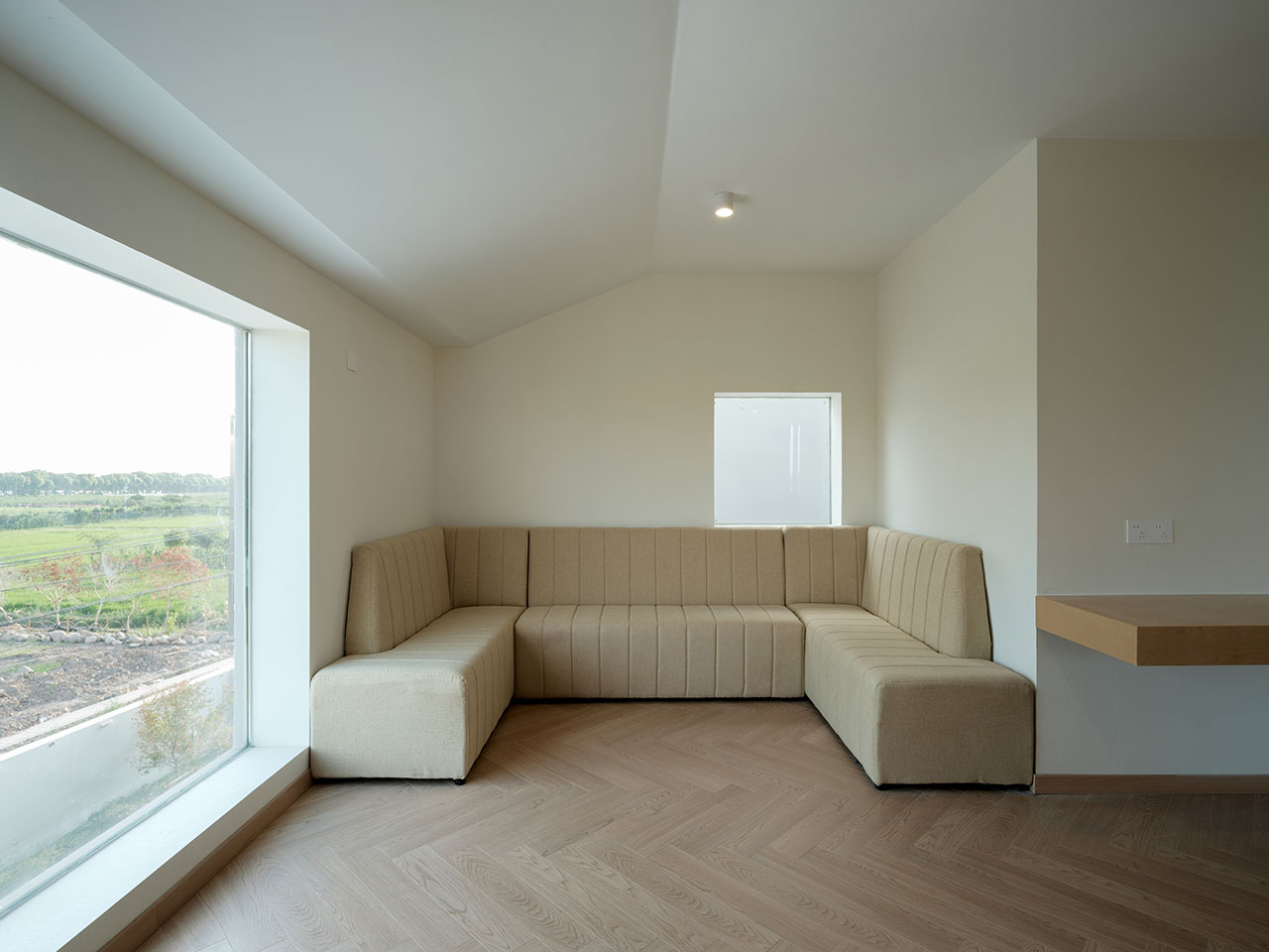 11间客房、宴会厅、棋牌室,功能齐全却不张扬。在成本与在地施工水平的限制下,固定家具系统整合需求,简化节点,确保落地。这里没有刻意的设计痕迹,只有建筑与稻田的安静对话,守护着这片水土与时光。