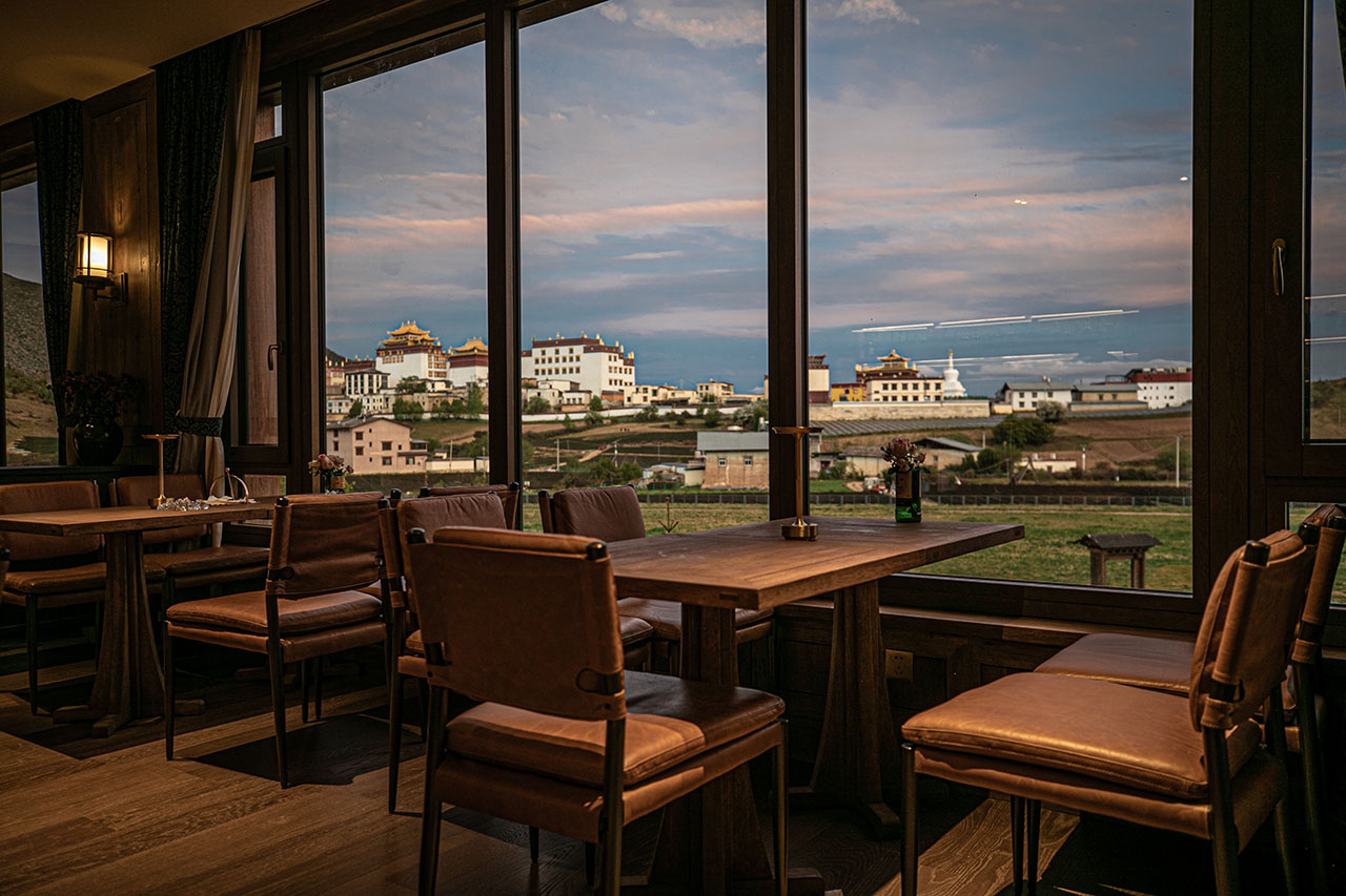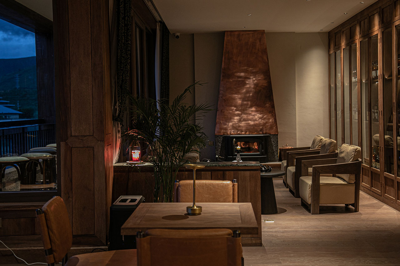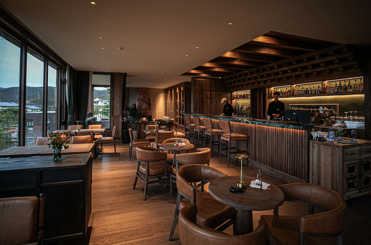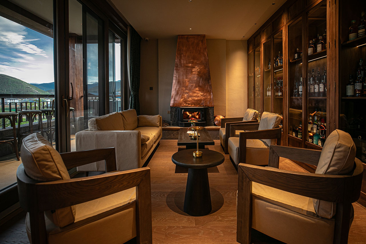 踏入香格里拉林卡的日落酒馆,推窗即见松赞林寺的金顶与藏族村落交错的田园风光。这里没有刻意的藏式符号堆砌,取而代之的是自然生长出的在地气息——本地核桃木榫卯拼接的吧台,由香格里拉匠人亲手打造,温润的木质触感中藏着传统工艺的温度;铜制壁炉跃动着火焰,延续着藏地以铜器礼待贵客的习俗,围坐其间,既能感受暖意,也能触摸到东西方文化中共通的“家”的凝聚力。