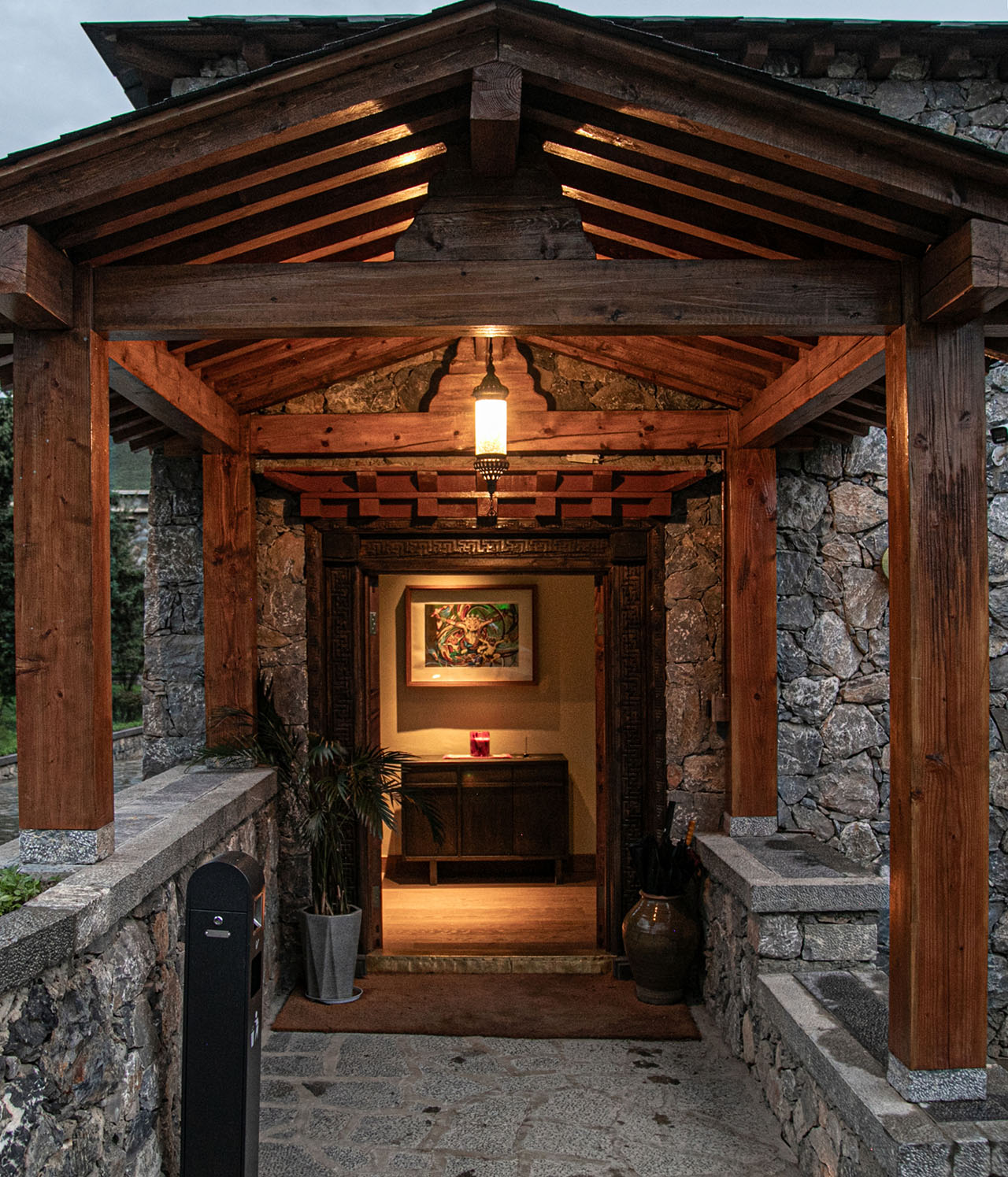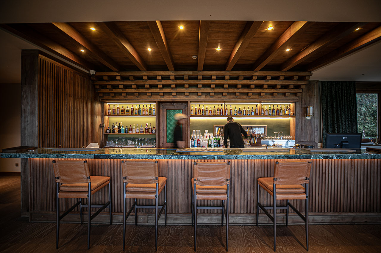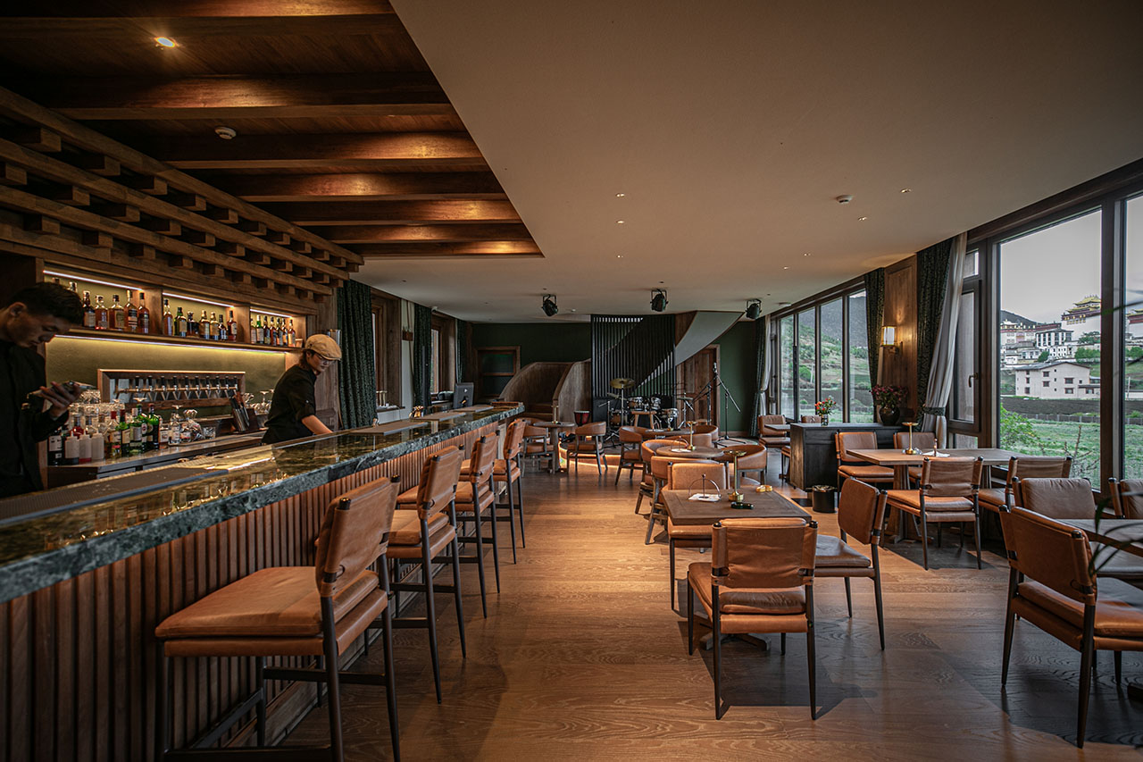 踏入香格里拉林卡的日落酒馆,推窗即见松赞林寺的金顶与藏族村落交错的田园风光。这里没有刻意的藏式符号堆砌,取而代之的是自然生长出的在地气息——本地核桃木榫卯拼接的吧台,由香格里拉匠人亲手打造,温润的木质触感中藏着传统工艺的温度;铜制壁炉跃动着火焰,延续着藏地以铜器礼待贵客的习俗,围坐其间,既能感受暖意,也能触摸到东西方文化中共通的“家”的凝聚力。