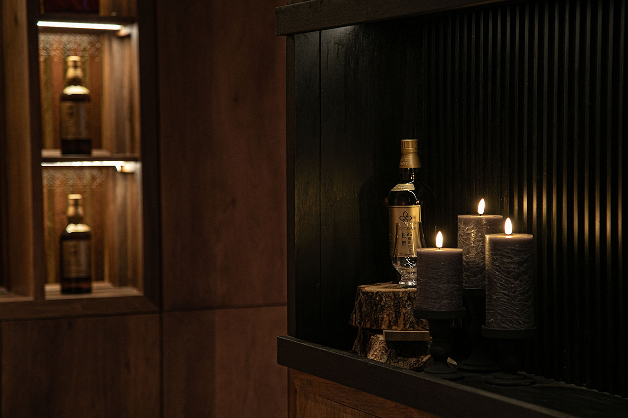 空间随阶梯式酒柜的灯光层层晕染,威士忌的琥珀光泽与窗外的雪山遥望。拾级而上的旋转楼梯通向观星阁,仿佛从微醺的欢愉步入高原星空的辽阔。在这里,品饮不仅是味觉的探索,更是视觉、触觉与心灵的共融——藏地的风土、匠人的虔诚、文化的对话,都化为一杯酒中的惬意与安然。