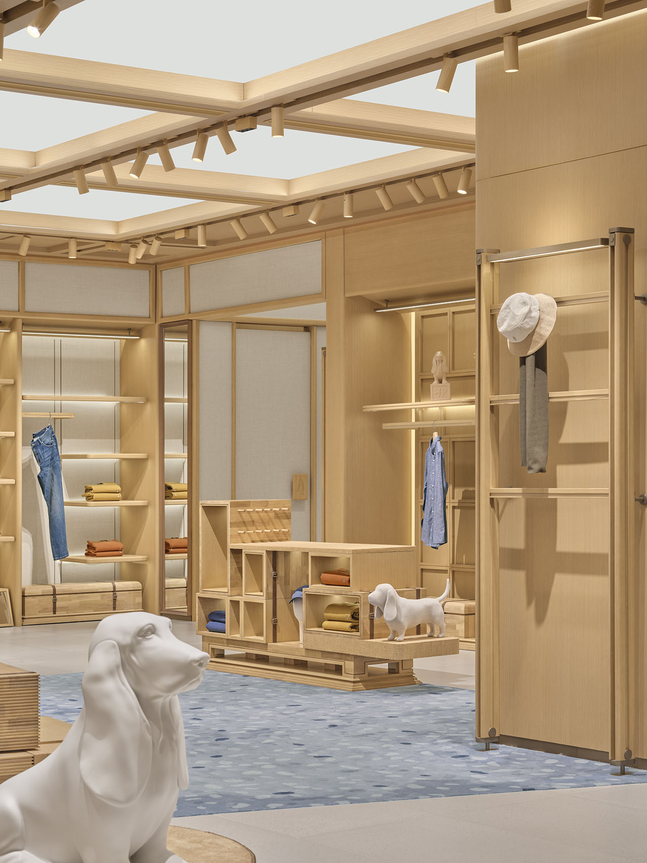 作为品牌标志的巴吉度猎犬(Basset Hound),建立空间的视觉符号,成为无处不在的情感锚点。它们时刻温情陪伴在人的身旁,隐喻着家所给予的全然信赖与安全感,承载着一种静默的、持续的、温柔陪伴的生活哲学。