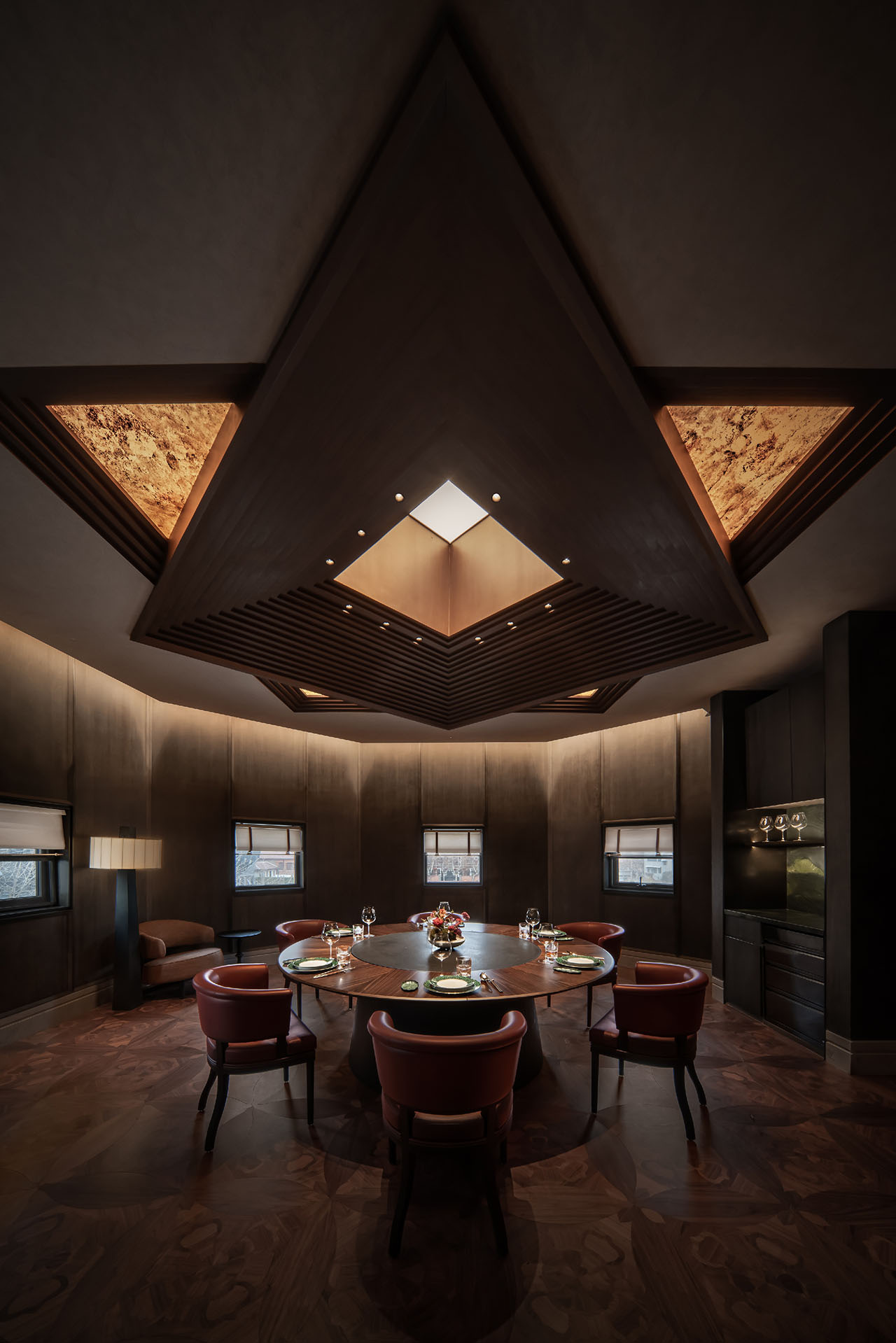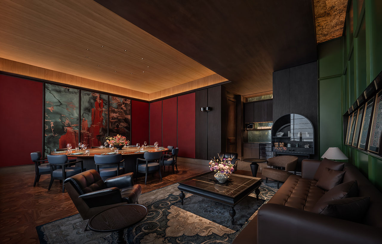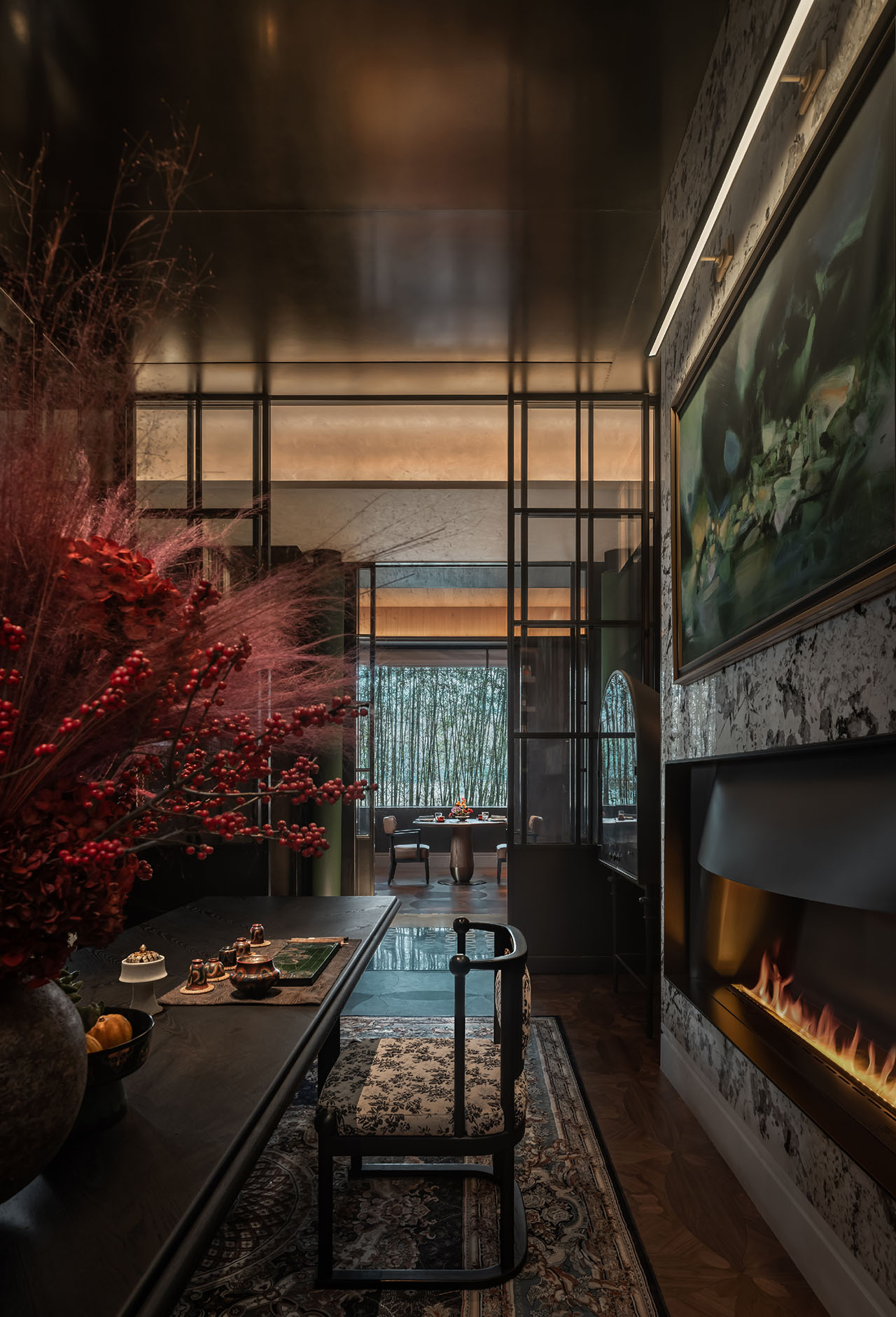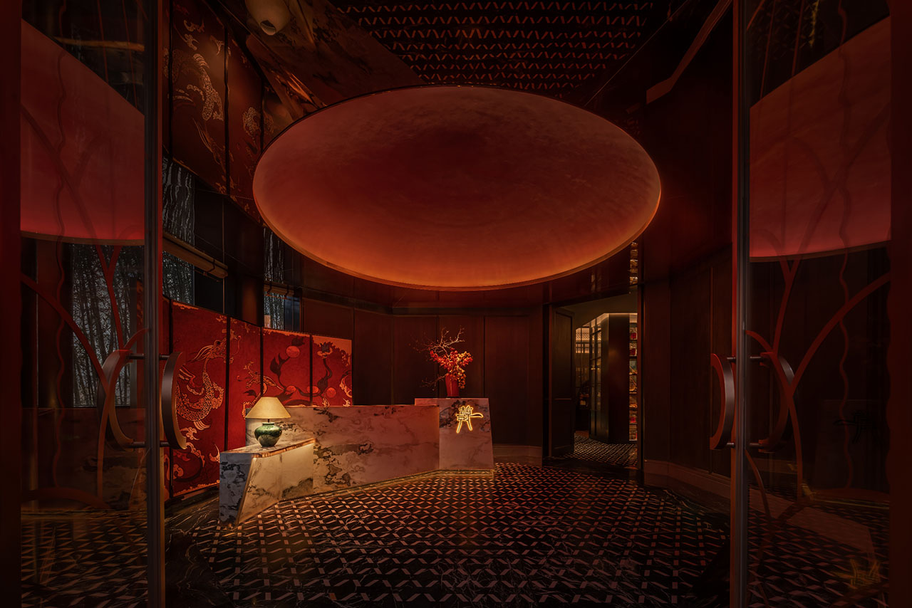 烟熏灰的沉静、中国红的炽烈、仿铜金的暖煦,将吉祥寓意织入空间经纬——并非刻意装饰,而是文化本身的显影。
