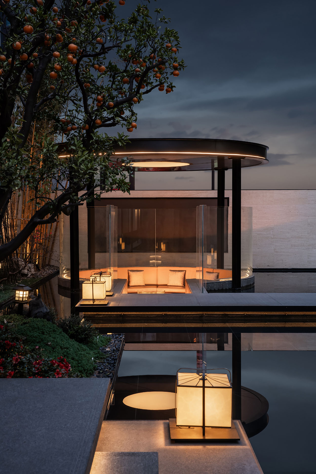 以现代园林笔法重构场域记忆,光影回廊串联起漫游意境——步移景异间,“身居闹市而得江流之胜”的古雅,翩然复苏。