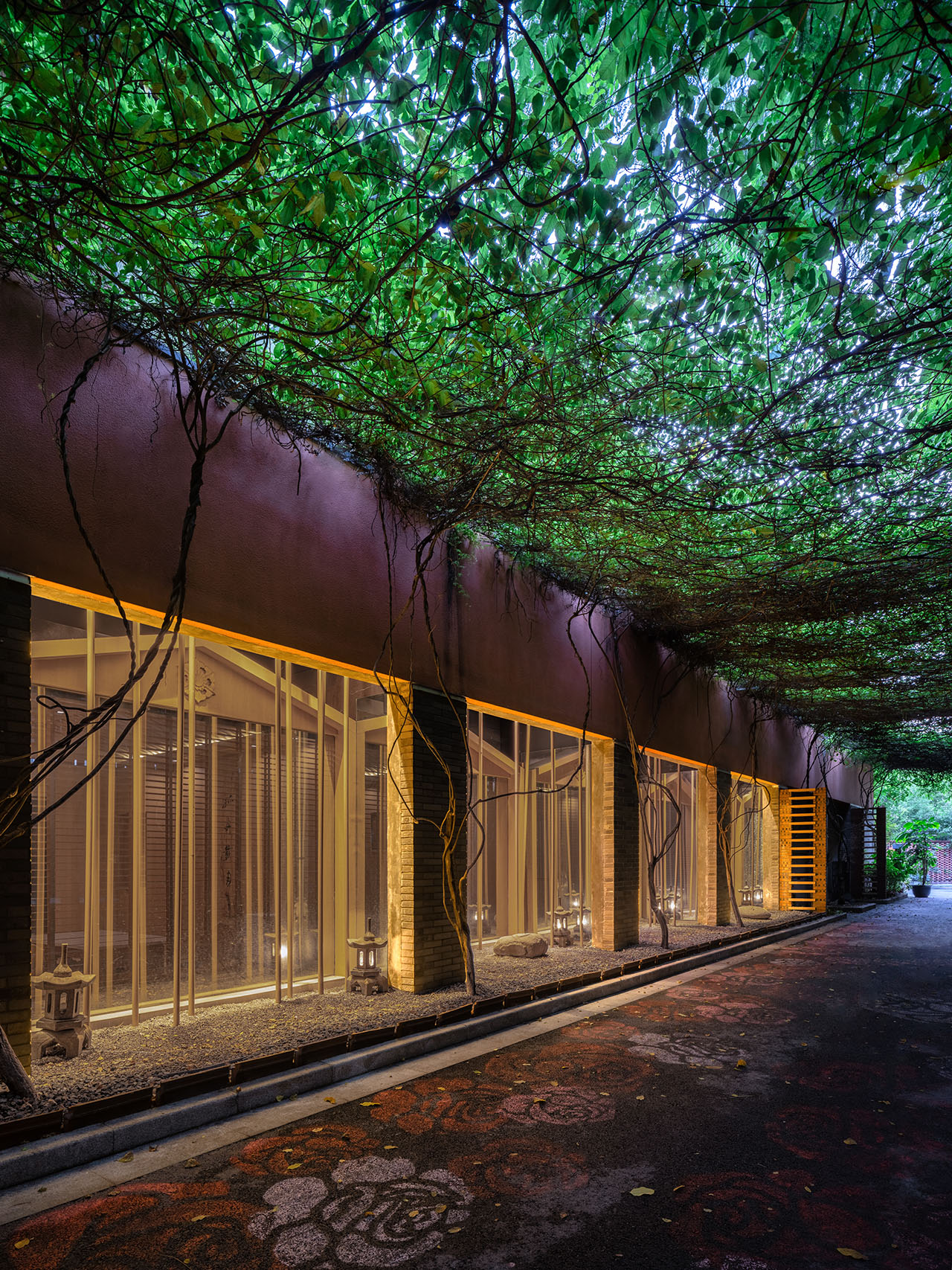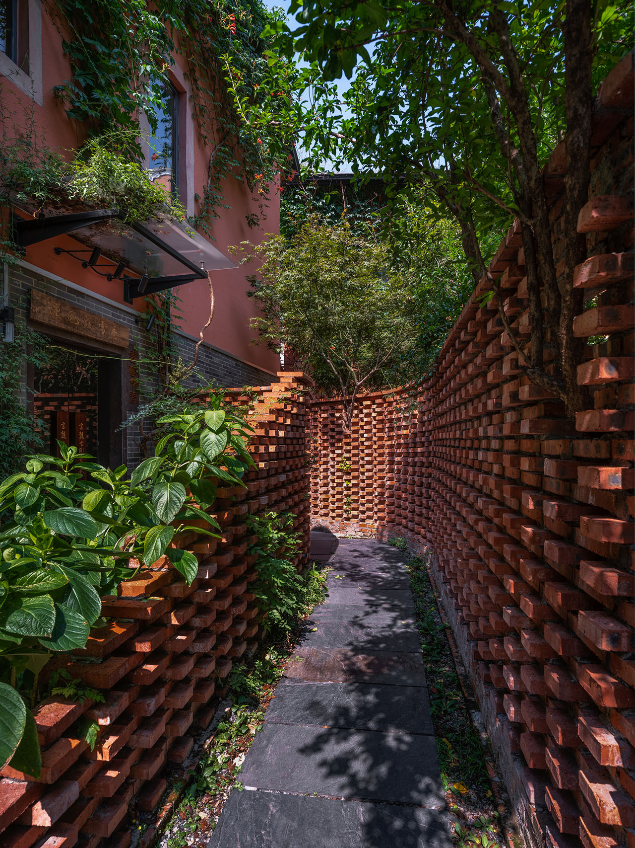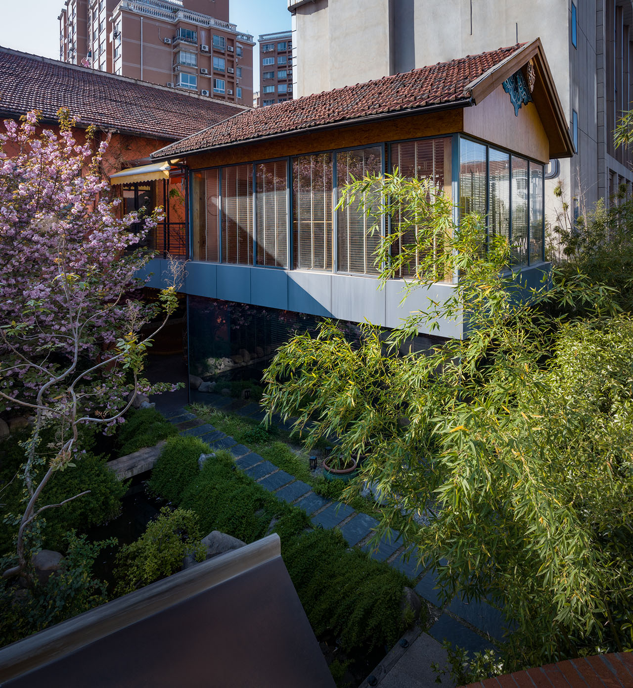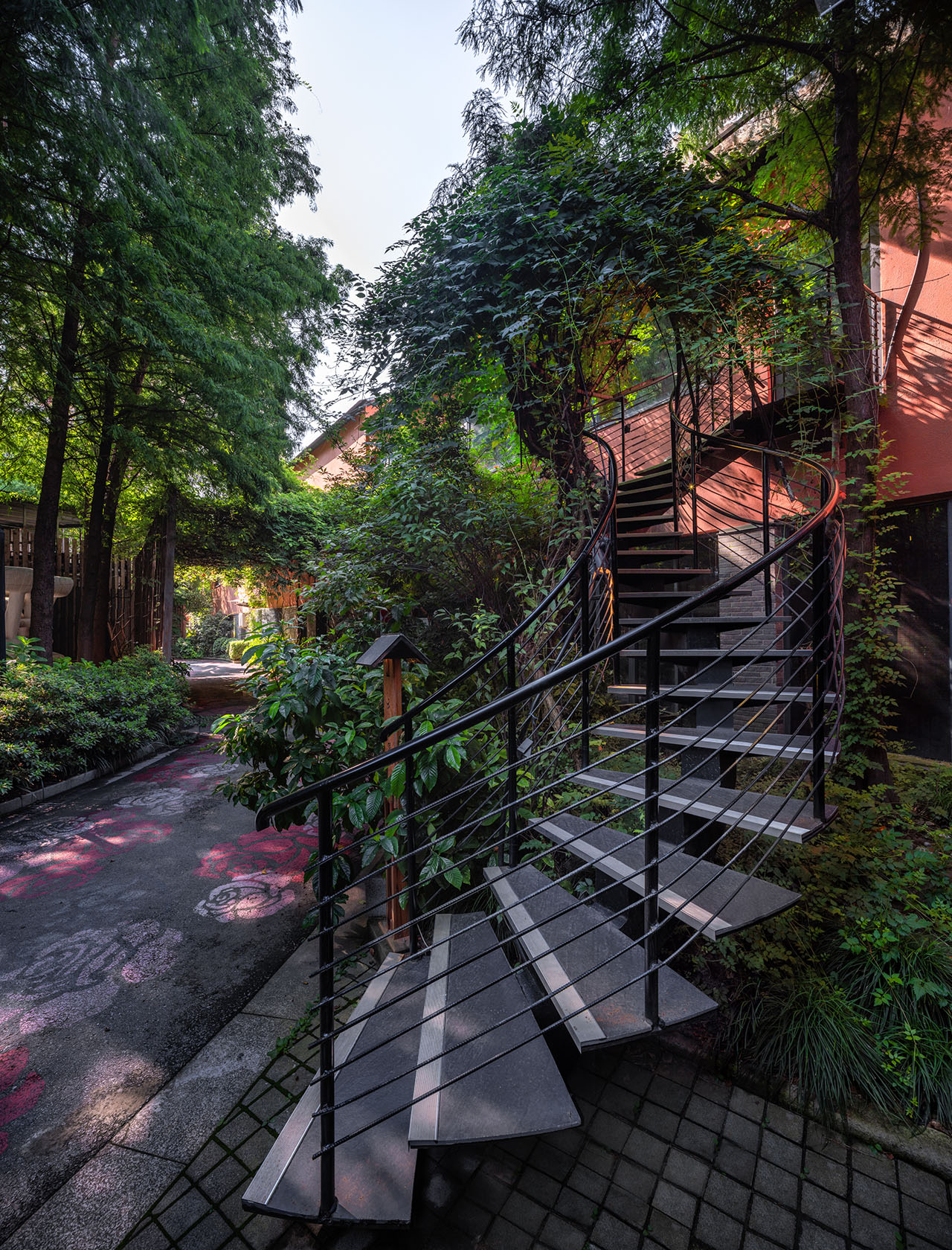 现在环保低碳的建造方式似乎特别时髦,但我们回首中国历史的时候,会发现中国人的生存哲学本质上就强调和自然的和谐相处,与西方不同,我们往往把自己视为自然万物的组成部分,而非和自然对立,所以就有了木构建筑,有了我们和自然独特的相处方式,无论是秦观的“树绕村庄,水满陂塘”,还是陶渊明的“托体同山阿”,都将人置于自然之中,相互渗透共处。因此在整个改造过程中,我们将这种人和自然的关系注入到场地,花了巨大精力来规划丰富的自然场景,能种植的地方都被利用起来,场地基本面貌瞬间焕然一新。当六十五棵墨西哥落羽杉和丰富的关山樱、石榴、木槿、杜鹃、山茶、蔷薇、紫藤,在场地中生根、发芽、弥漫的时候,建筑坚硬的边界逐渐溶解,我们拥有了一方有别于周边城市空间的隐秘花园。随着时间的推进,建筑会逐渐老化,但是种下去的植物却会越来越生机勃勃,用生命将整个空间充盈起来。藤蔓覆盖了墙体,树影遮挡了屋面,建筑形象变得不那么重要,代之以四季的景致和每天变化的光阴。每个人经过的一瞬间都会由衷的赞叹,虽然这种自然庭院在江浙并不鲜见,但是在高密度的上海中心城区,它的确是做到了与众不同。