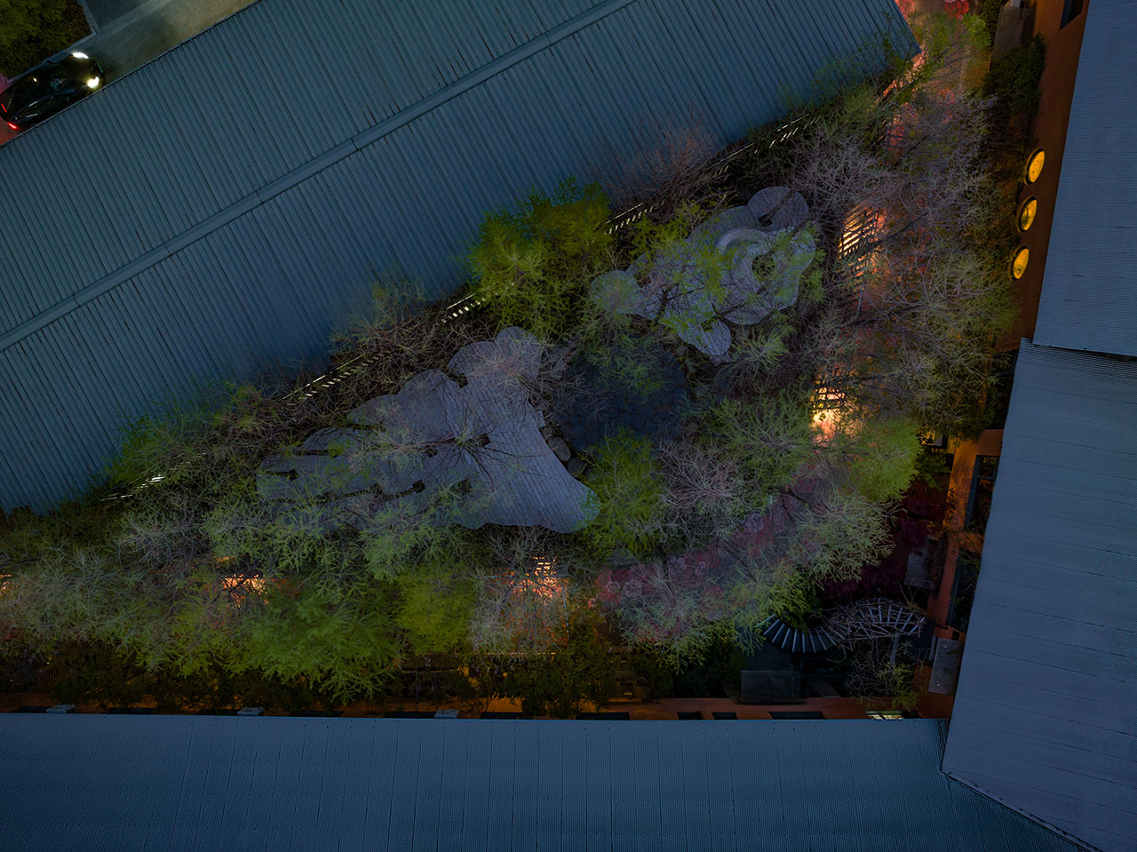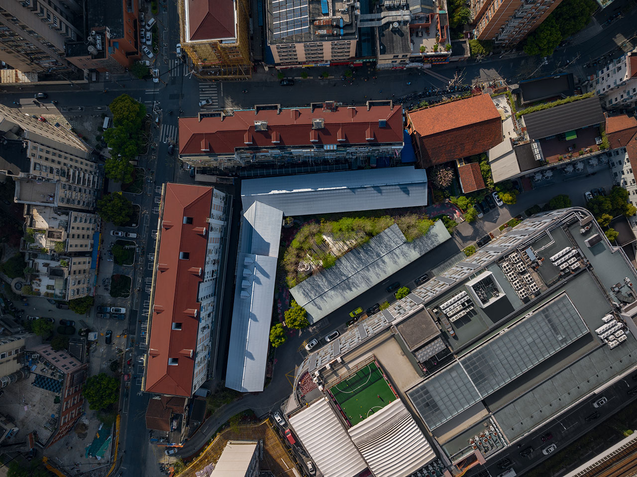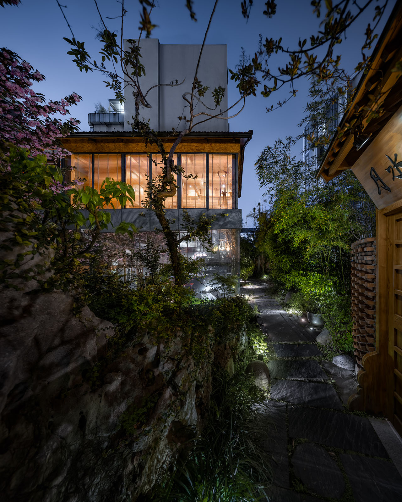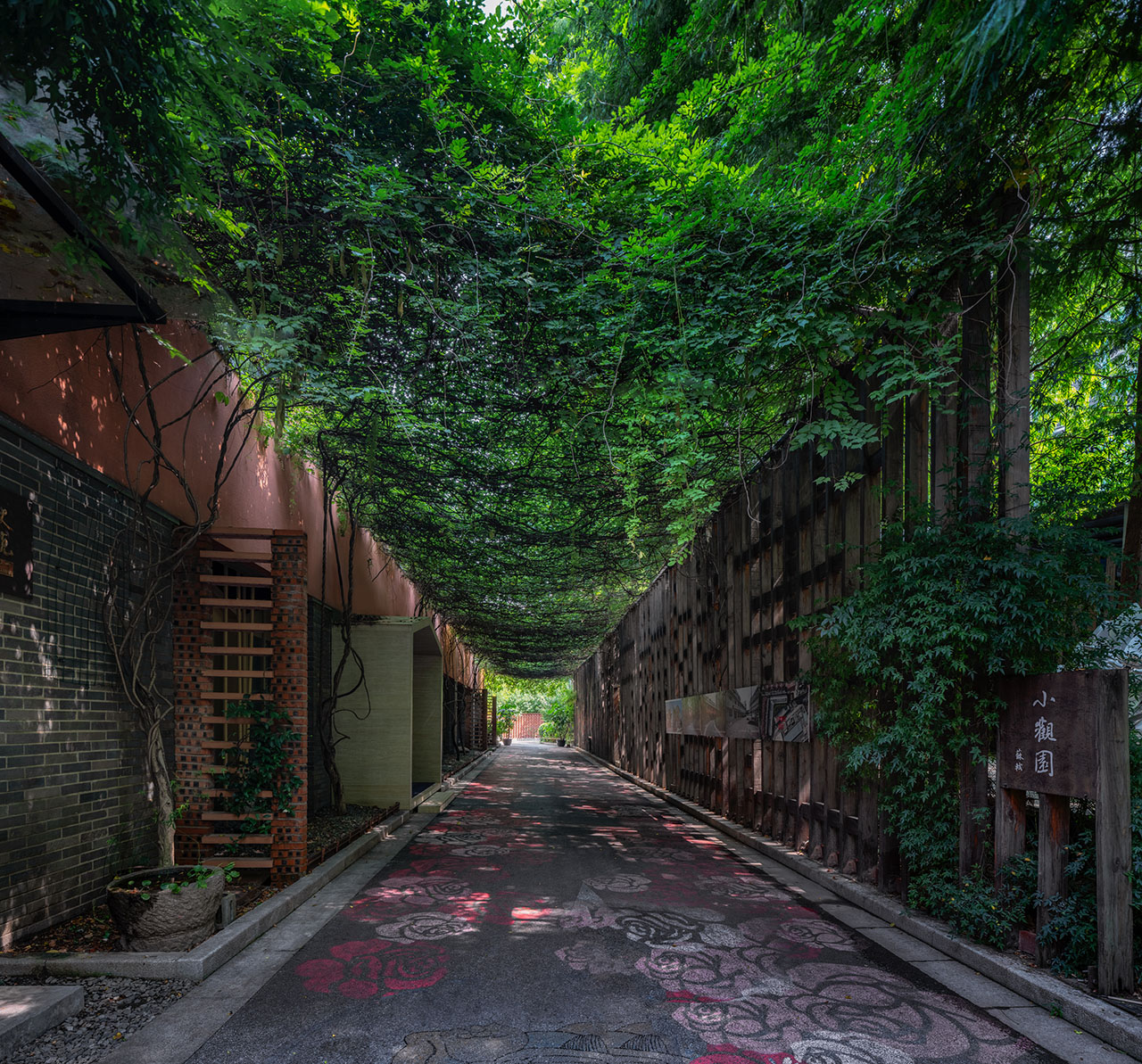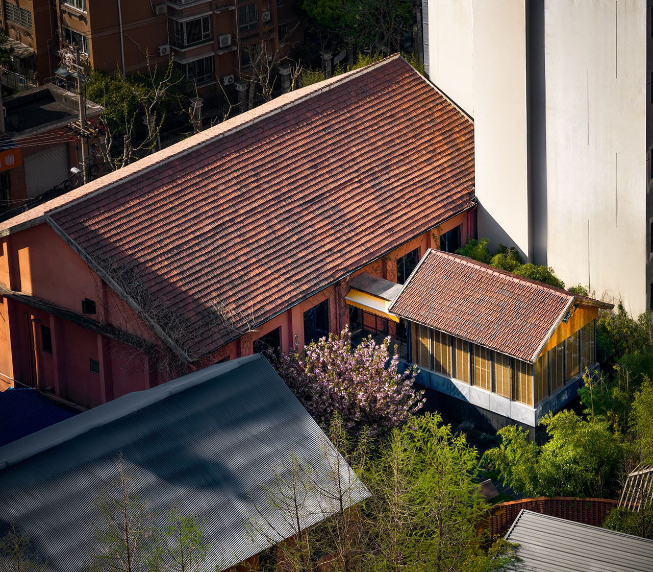 现在环保低碳的建造方式似乎特别时髦,但我们回首中国历史的时候,会发现中国人的生存哲学本质上就强调和自然的和谐相处,与西方不同,我们往往把自己视为自然万物的组成部分,而非和自然对立,所以就有了木构建筑,有了我们和自然独特的相处方式,无论是秦观的“树绕村庄,水满陂塘”,还是陶渊明的“托体同山阿”,都将人置于自然之中,相互渗透共处。因此在整个改造过程中,我们将这种人和自然的关系注入到场地,花了巨大精力来规划丰富的自然场景,能种植的地方都被利用起来,场地基本面貌瞬间焕然一新。当六十五棵墨西哥落羽杉和丰富的关山樱、石榴、木槿、杜鹃、山茶、蔷薇、紫藤,在场地中生根、发芽、弥漫的时候,建筑坚硬的边界逐渐溶解,我们拥有了一方有别于周边城市空间的隐秘花园。随着时间的推进,建筑会逐渐老化,但是种下去的植物却会越来越生机勃勃,用生命将整个空间充盈起来。藤蔓覆盖了墙体,树影遮挡了屋面,建筑形象变得不那么重要,代之以四季的景致和每天变化的光阴。每个人经过的一瞬间都会由衷的赞叹,虽然这种自然庭院在江浙并不鲜见,但是在高密度的上海中心城区,它的确是做到了与众不同。