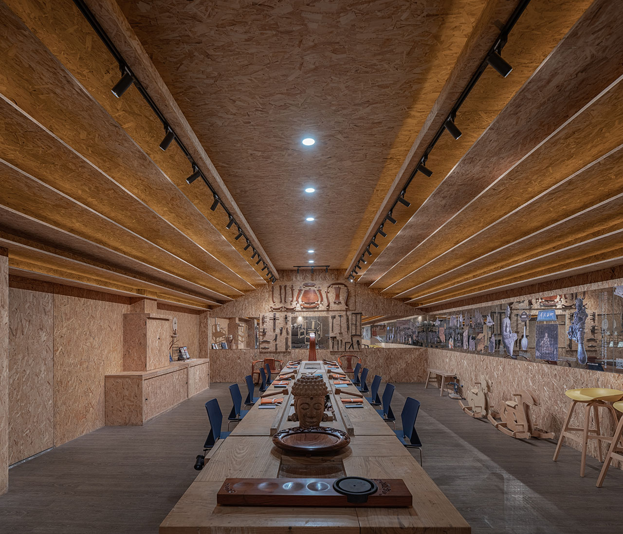 当真正开始着手做的时候,我们也深刻的理解了大多数甲方给予设计者提的要求-“少投入多产出”。除去建筑设计需要的办公空间,木工坊的生产和展示空间以外,剩下的部分在内容上的丰富和填充,成为一个非常重要的命题,如何在空间内形成一个自我循环,互相服务的良好生态,对于空间的持久运营是非常关键的事。这些也是在日常项目设计中遇到的具体问题,只不过我们的思考和站位角度和现在不一样,仅仅提供设计服务时,我们很难处在一个开发和运营者的角度上去思考问题,但是一旦当你处在这个位置上去想这些事的时候,就会非常理解在设计中甲方的要求,那些曾经建筑师觉得不可理喻的部分。开始设计时,更多的考虑向上策划端,向下实施端的一些问题,设计的抓手更加明确,目标方向也更加清晰,对于设计形式的控制并不是只凭拍脑袋的想法,而是基于内容要求,通过具体的要求和限制条件,得出确切而合理的解决方式。
