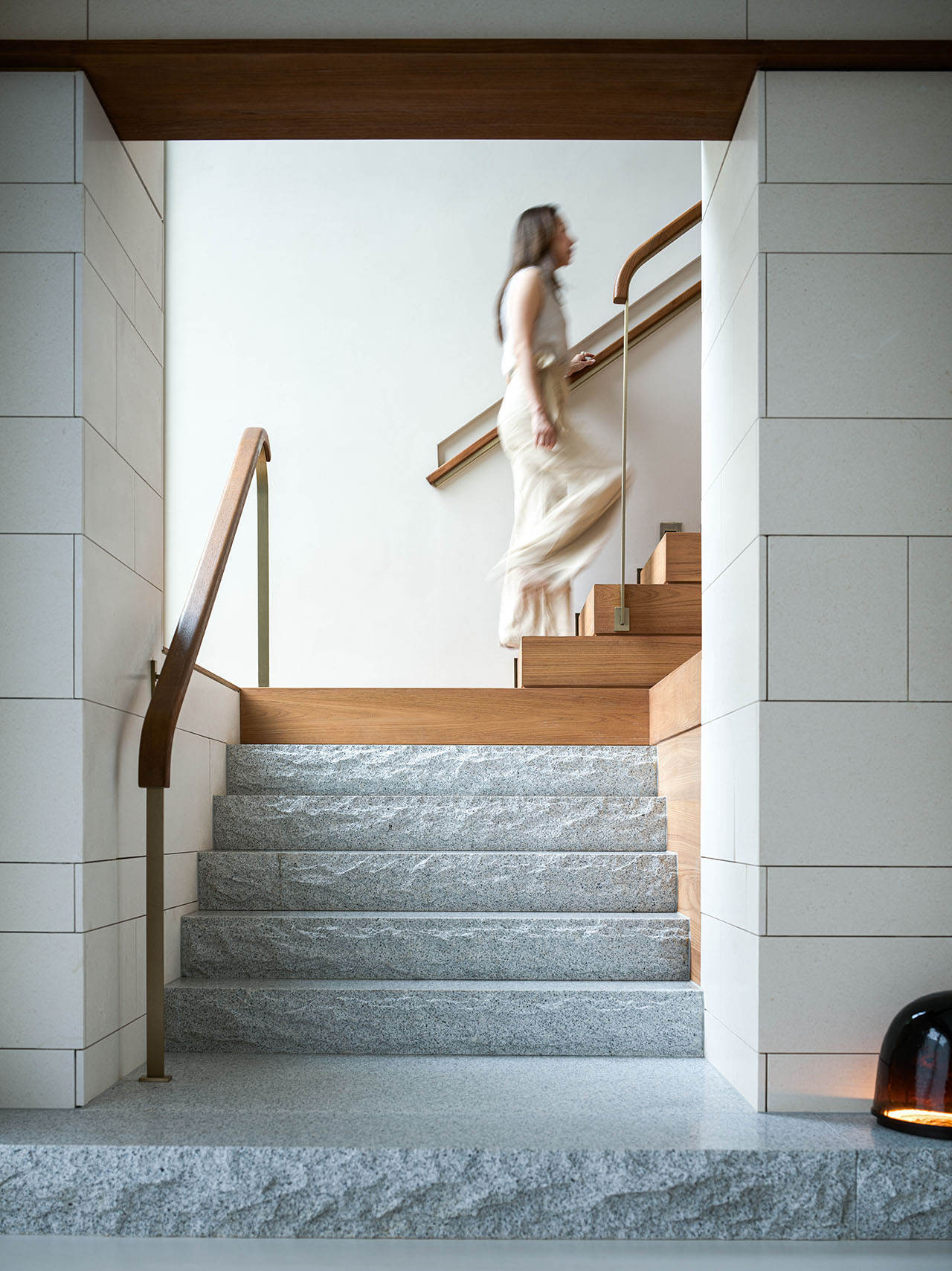 上行的台阶则在转角处创造了另一处艺术品展位,在自然流淌的光线下呈现万变。