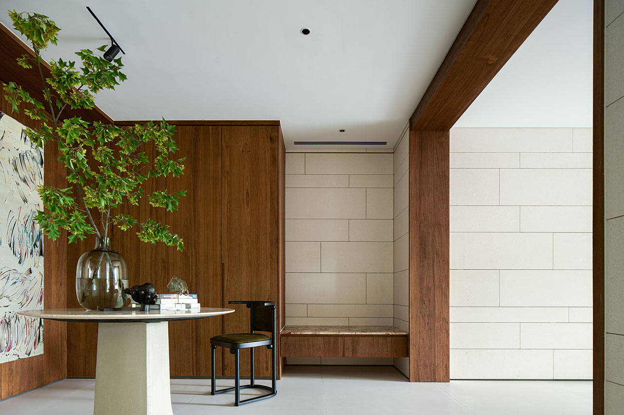 玄关外推,并列于艺术空间一侧,与前厅自然融合。从这里作为起点,可以步入私人画廊观览,亦可进入家庭空间开启生活。