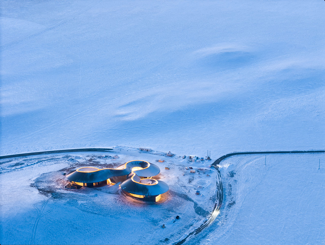 当时间的尺度拉长,以物候的视角体验草原,火山褐色的游客中心在夏季与绿意融融的草原对话;在春秋成为金黄草原渐变色调的延伸;在冬季以熔岩般的暖意筑成茫茫雪原中人的栖居之所。这里,时间包容物我,自然疗愈精神。