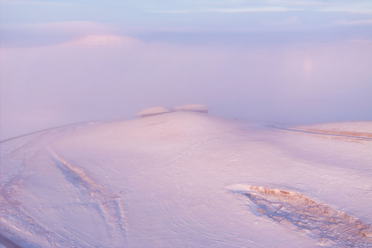 正如到达者被白银库伦草原火山寂寥野性之美所震撼触动的每一次现场体验时刻,那些隐在时间深处的秘境美景与气象景观,只有将自我交予身心的荒原,或驻足等待,或不期而遇,它们就会慷慨地馈赠每个到达者的跋涉与期许。譬如落日从游客中心西侧的哈日陶勒盖和钦噶音锡勒之间沉入草原尽处地平线的时刻;譬如日出从火山里的脊线上升起的时刻;譬如行至火山里制高点的天火台艺术装置,看见锡林浩特第一缕曙光的时刻;譬如夜幕中漫游廊道的光晕似熔岩般流淌的时刻;譬如雨后彩虹、天边飞云、风雪漫野的时刻。