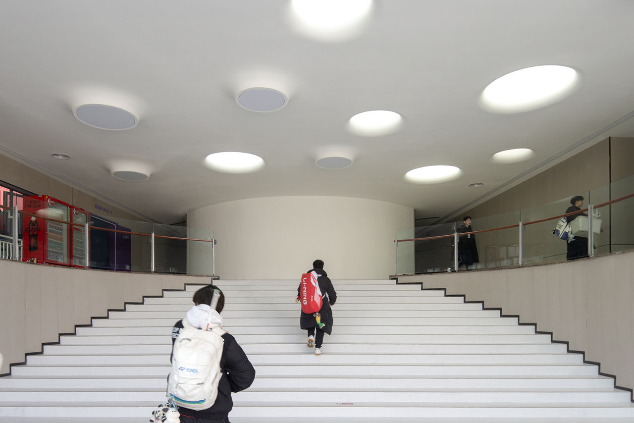 入口内的半圆形大台阶,超越交通功能,成为一处象征“向上”的精神性场所,未来亦可作为展示冠军历程的叙事舞台。