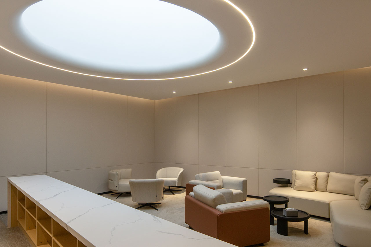 主入口上方设置天窗,阳光经其漫射而入,为步入大厅的人们注入一份源于自然的振奋与感动。