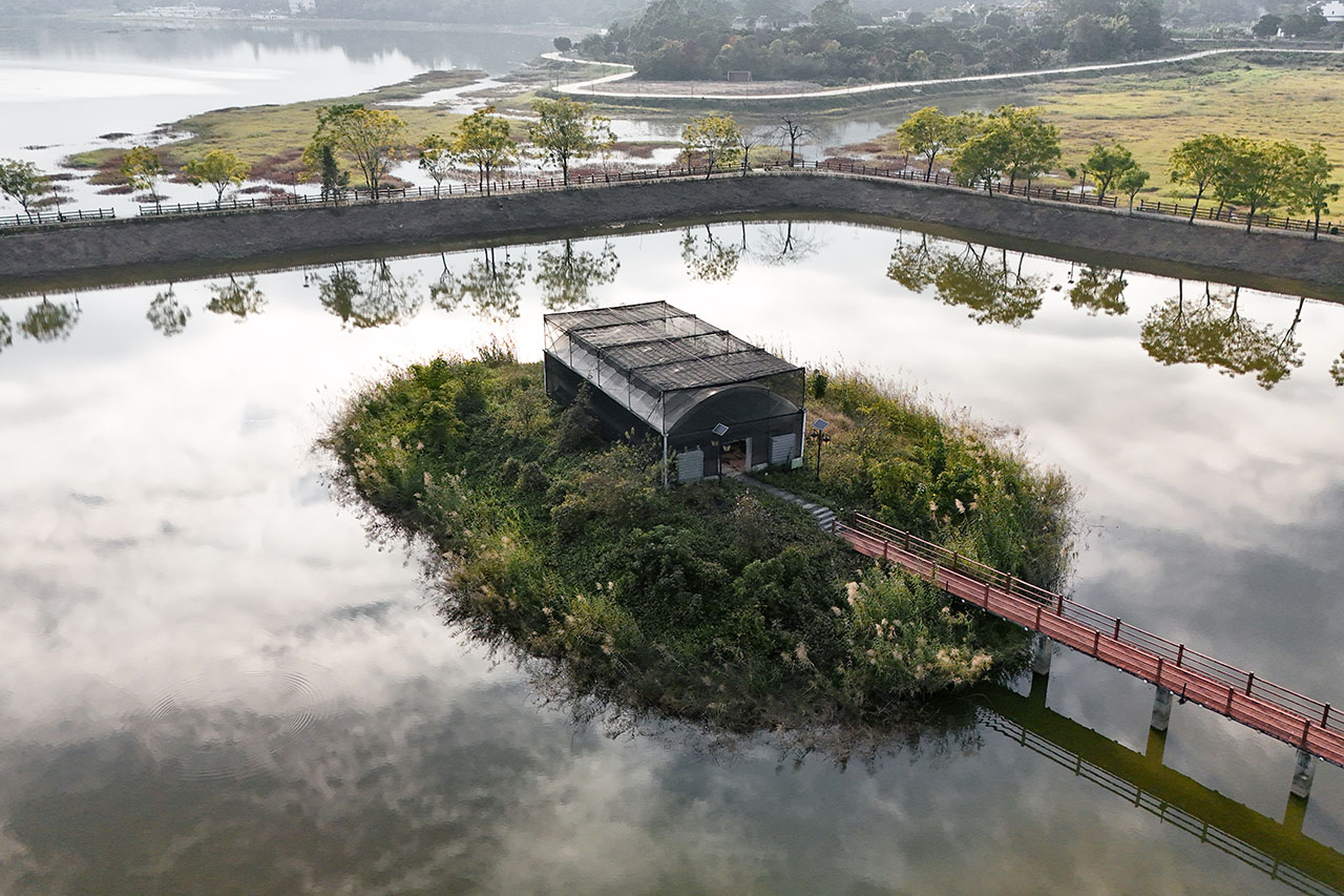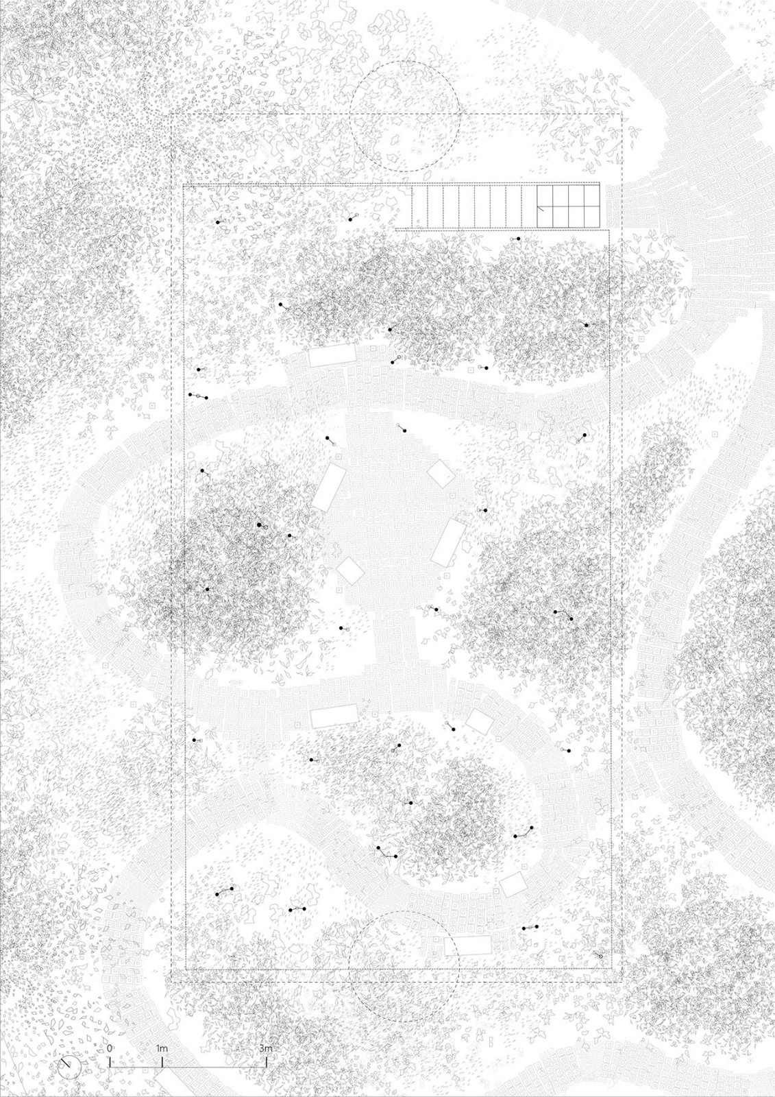 尽管原花房的物质结构未被保留,但“种花”这一行为被延续下来。设计打破了原有育苗花房清晰的室内外界限,使植物从建筑内部自然溢出,延伸至整个岛屿景观之中。由楼板底部的阴生植物逐渐向外过渡,与岛上原有植被融为一体,形成一种松弛的绿意,与建筑本身的精确性形成对比。