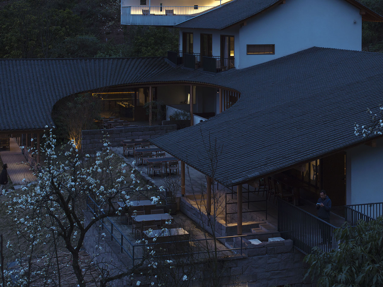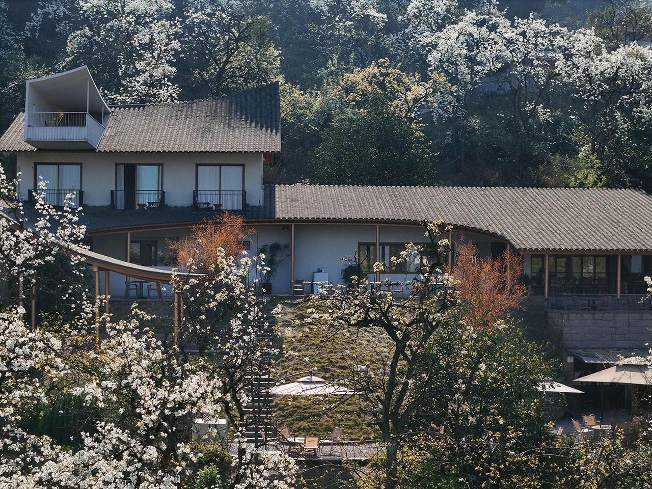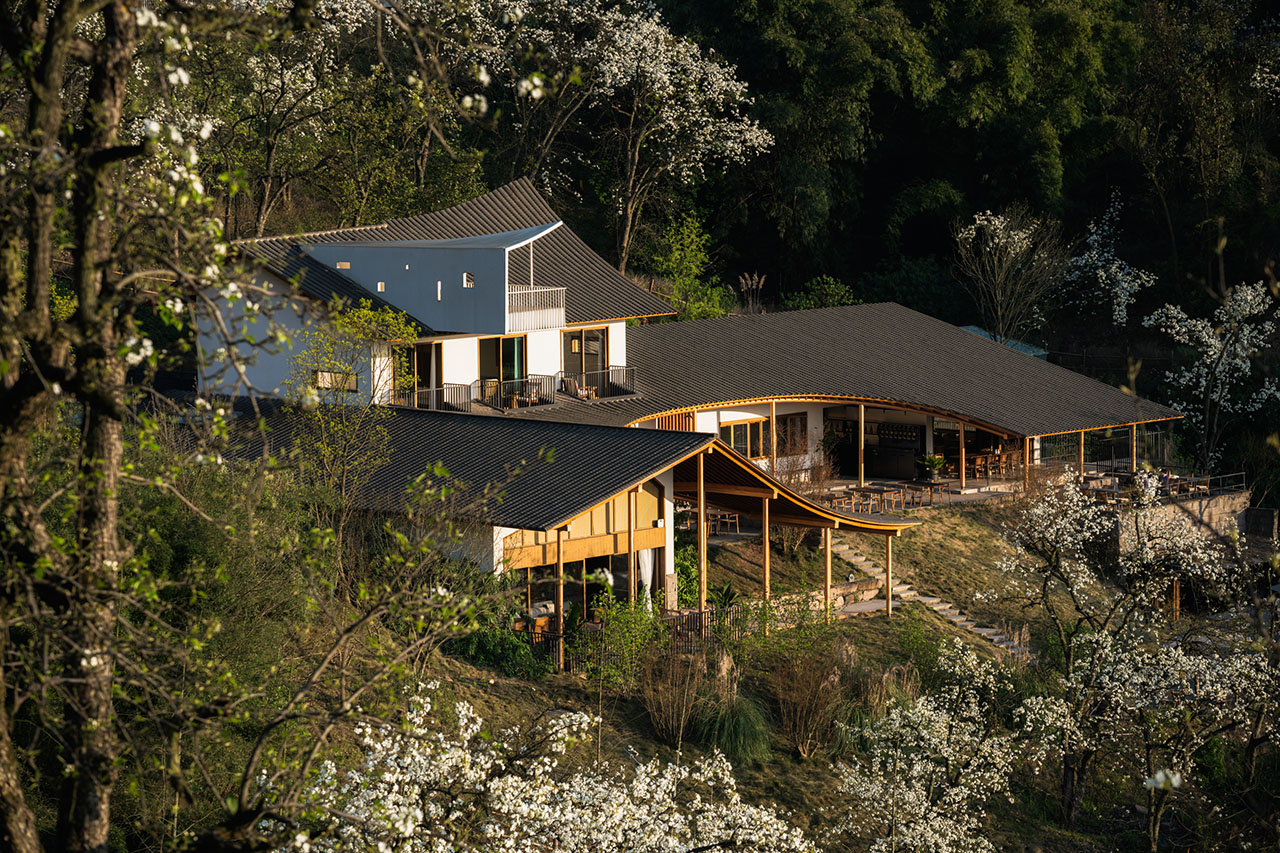 这是继泸州叙永·山岫民宿之后,小隐建筑在川南泸州打造的又一处山野度假作品。延续了小隐建筑一直以来乡野建筑营造的基调,低调内敛而又特立独行,适宜的融于山林之中。川南民居的现代演绎,汇集了传统川南民居的各种建筑特点,梨花瓣意象转化的点缀,将东方美学洒落在这片川南山野之中。山林、山花、雨雾、晚霞的浸润,赋予了不在山林诗意与灵气,在山野间演绎隐逸之美。