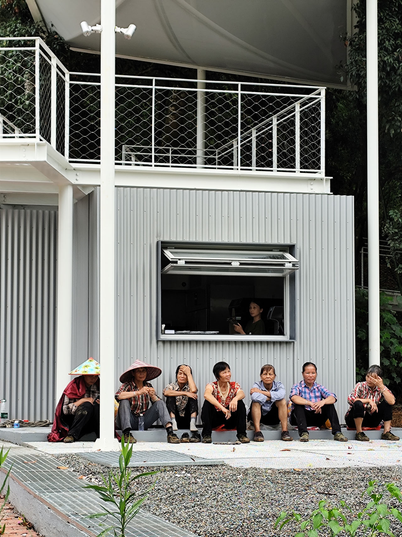 其中咖啡屋由众建筑的长期产品"插件家"构建,卫生间由一体化卫浴产品形成,两者都快速搭建,同时成为炎热华南地区中高性能的房屋,实践了对自然轻质介入的态度。