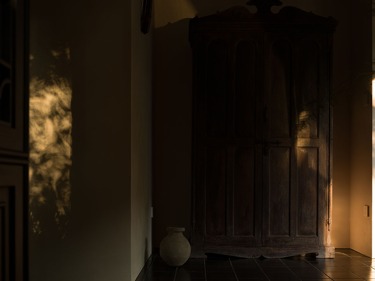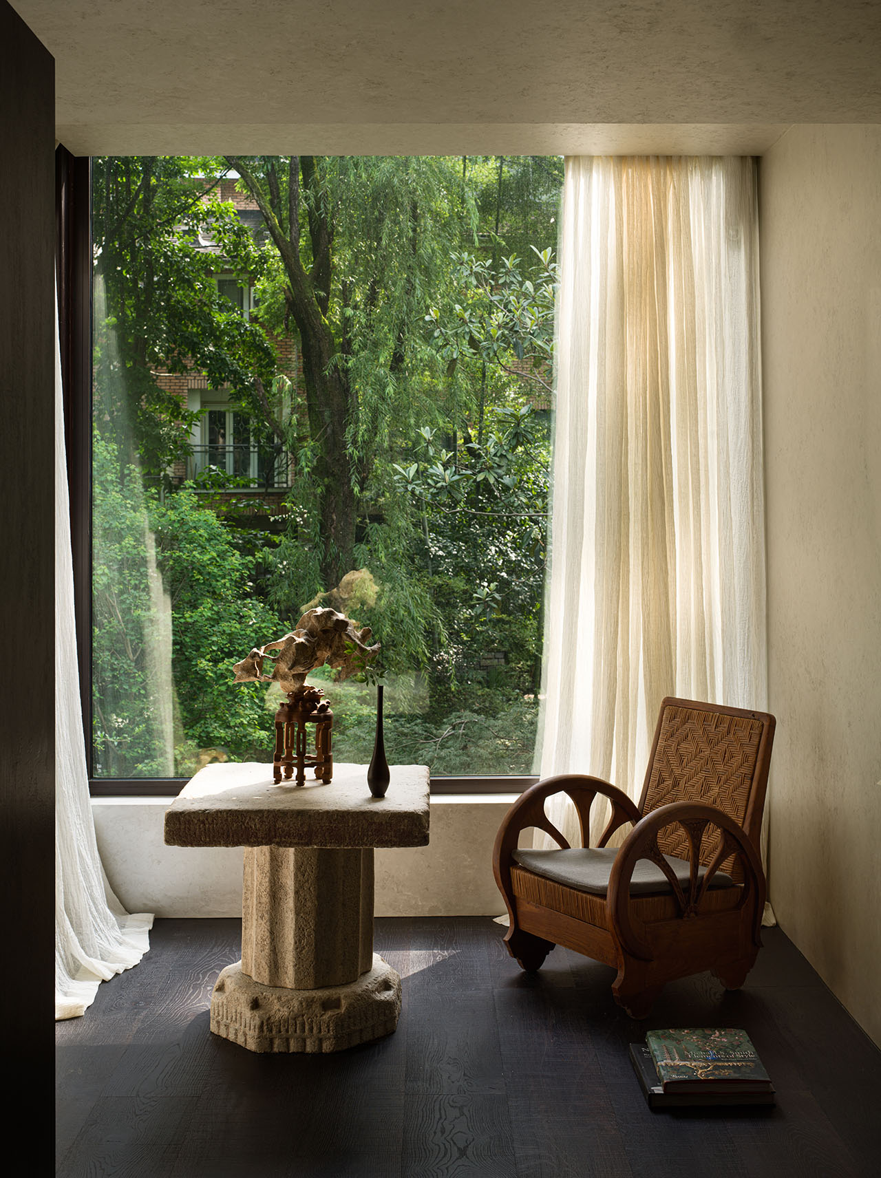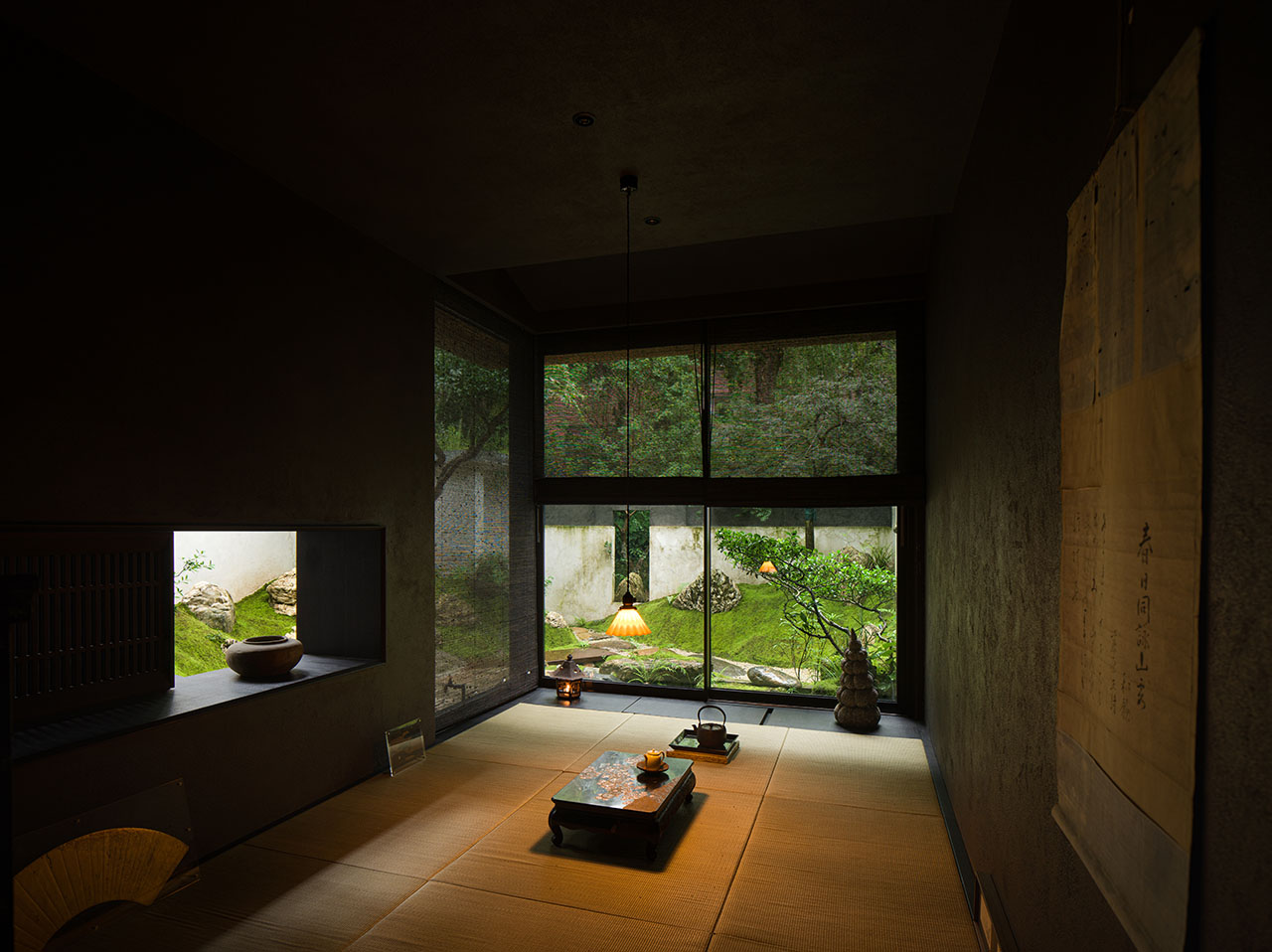 自然的光影成为最美好的画面,大茶室吊灯荒川上野手工吹制的,仿若有宇宙星辰之感。小茶室的法国手工灯,色温控到2300k,空间与自然共场如月光般抚慰人心。餐厅玻璃手工灯,错落有致既解决了层高高低不平的问题,也让用餐更有违合感更有氛围感。整体灯光使用克制,也全部可以调光,此空间因自然光及灯光而更美好。