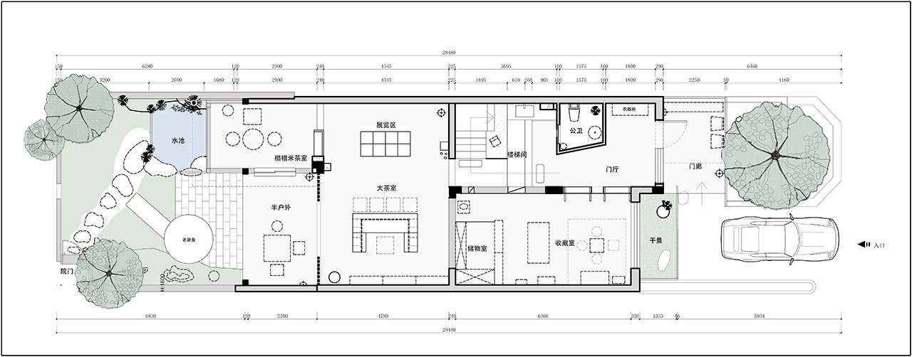 本案隐一院子,位于重庆蓝湖郡20年老别墅区,环境优美,闹中取静。主人热爱生活、喜好收藏、茶、香、酒。我们探索生活工作空间与环境相生相融,环境、空间、人相互滋养。重塑空间关系及空间尺度,以美好生活方式为媒介,成为栖心之地。这里是闹市里的心灵隐居地,因生活而起。由心而发;在这里随时随地都被大自然所包裹着;原有的建筑空间,是一个很平的外立面,通过我们整体的对空间的需求和梳理,建构了很多灰空间,形成了空间的场域感。也把新的功能梳理进去,使得整体的空间更为的合理,既能满足舒适性,又能够满足精神性!