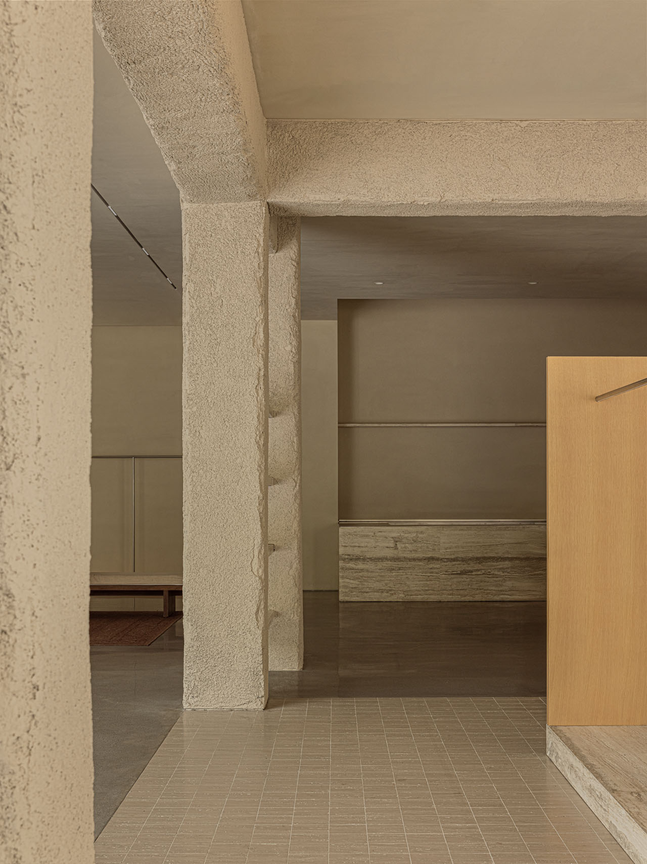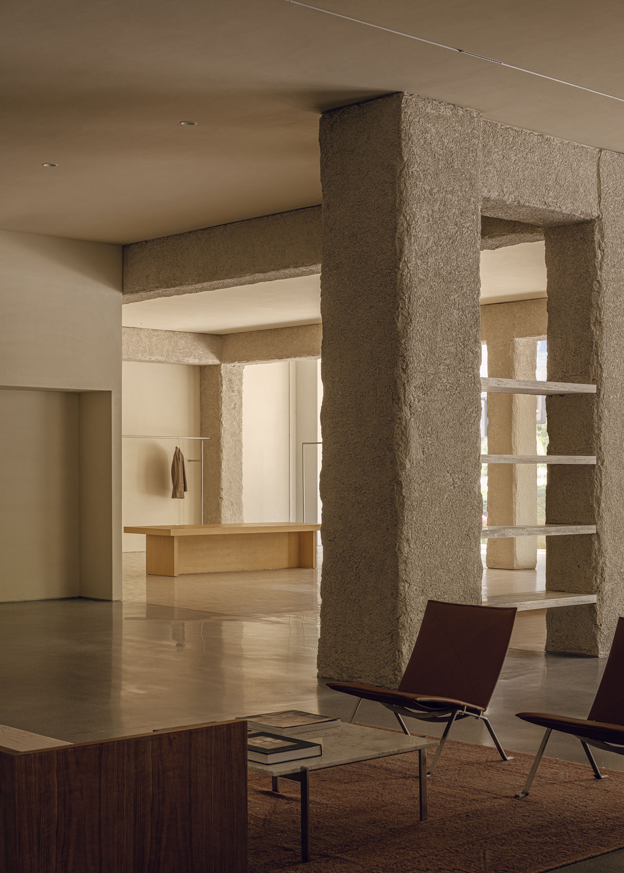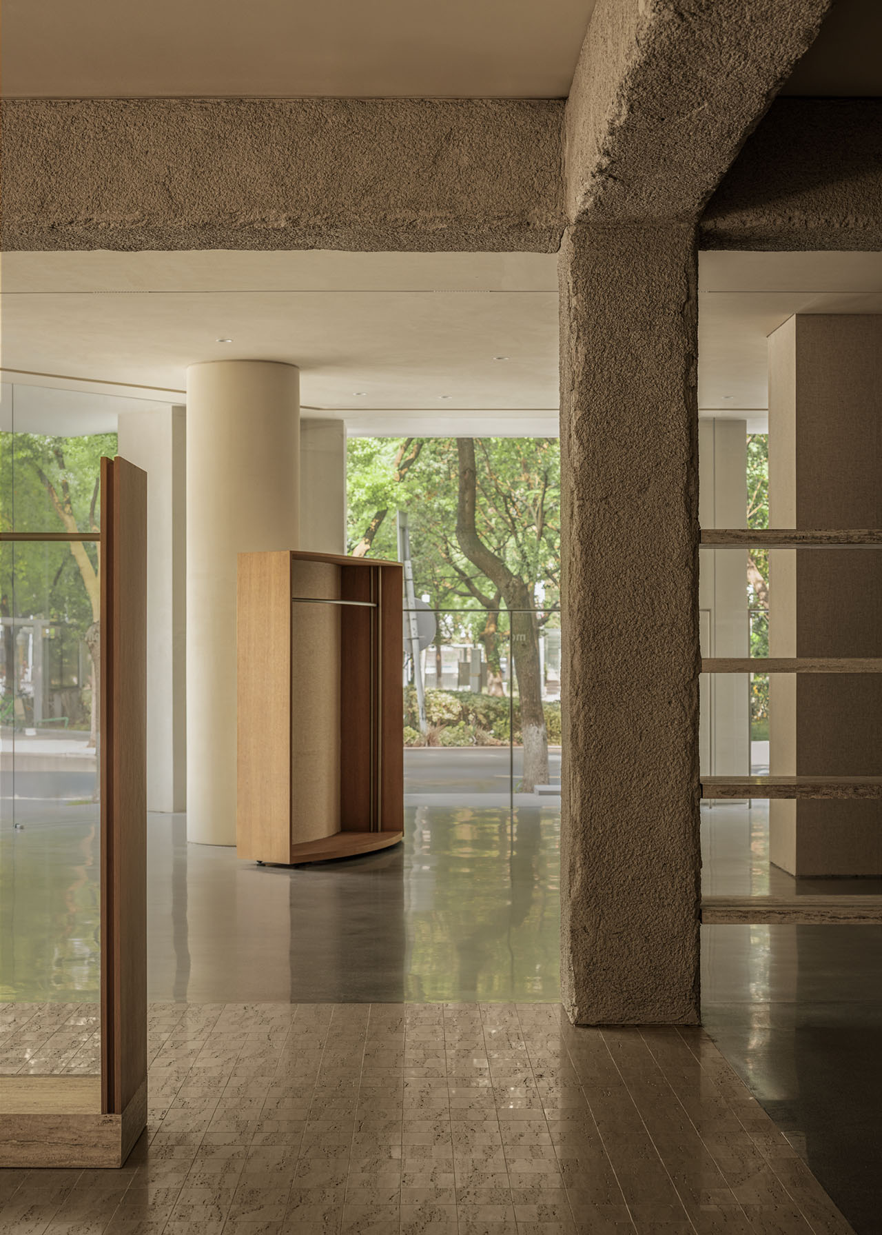 刻意保持留白,以材质本身去填满空间的底色,互相存在且剥离,逐渐显露品牌最真实的内质,展开长期主义的内在逻辑。