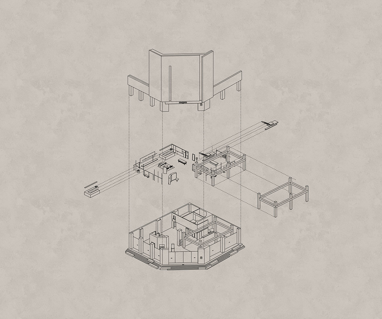 建筑,伴随块面的交互与构建,由外向内,梳理着理性的逻辑语言,明晰场景之间的依存关系。受此指引,舒展自由度更高的内部环境,形成穿透、退让,重塑新的美学秩序。