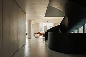 垂直动线的流动性,构建出一种动态的立体系统;通过多层嵌套设计,将整个家庭的空间系统分为“公共关系层”、“过渡层”与“核心层”,与真实的生活方式契合。针对人们对自然、社交、私密的诸多需求,这一理念不仅在空间美学上实现了形式与系统的统一,更从社会学的视角下,重构了居住者与空间、自然、社会的关系。