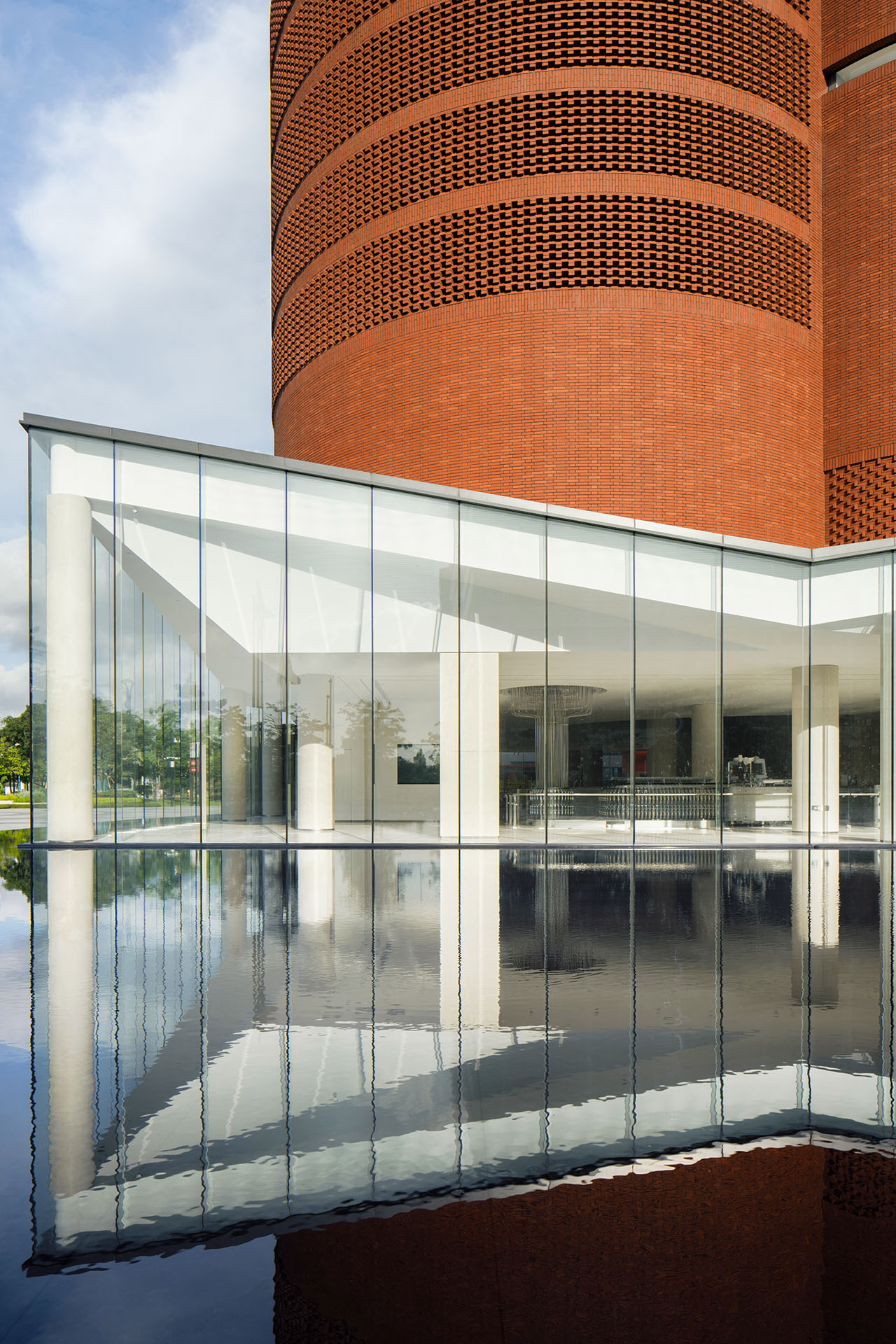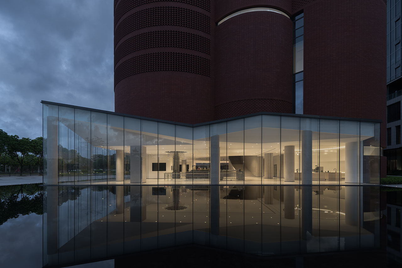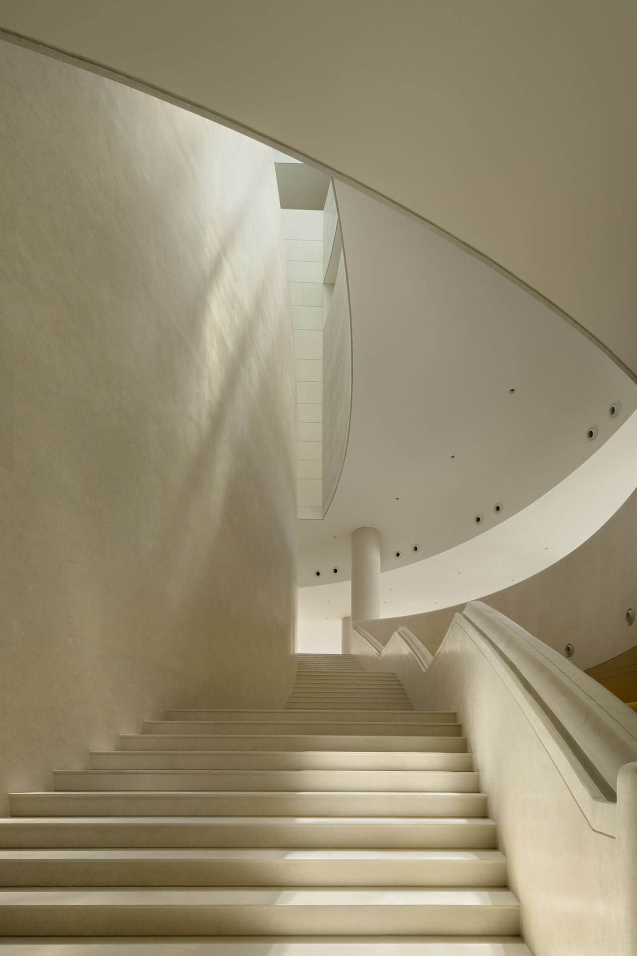建筑形态以香水蒸馏桶的形体为原型,从历史汲取灵感。在原建筑设计基础上,立品将博物馆公共空间大面积留白,以中庭为中心,通过自然光影与建筑空间的呼应,进一步营造首层的通透性与轻盈感,使其宛如一个「光之容器」,在明暗交错间,感受气味无形却相生相息的流动力量。