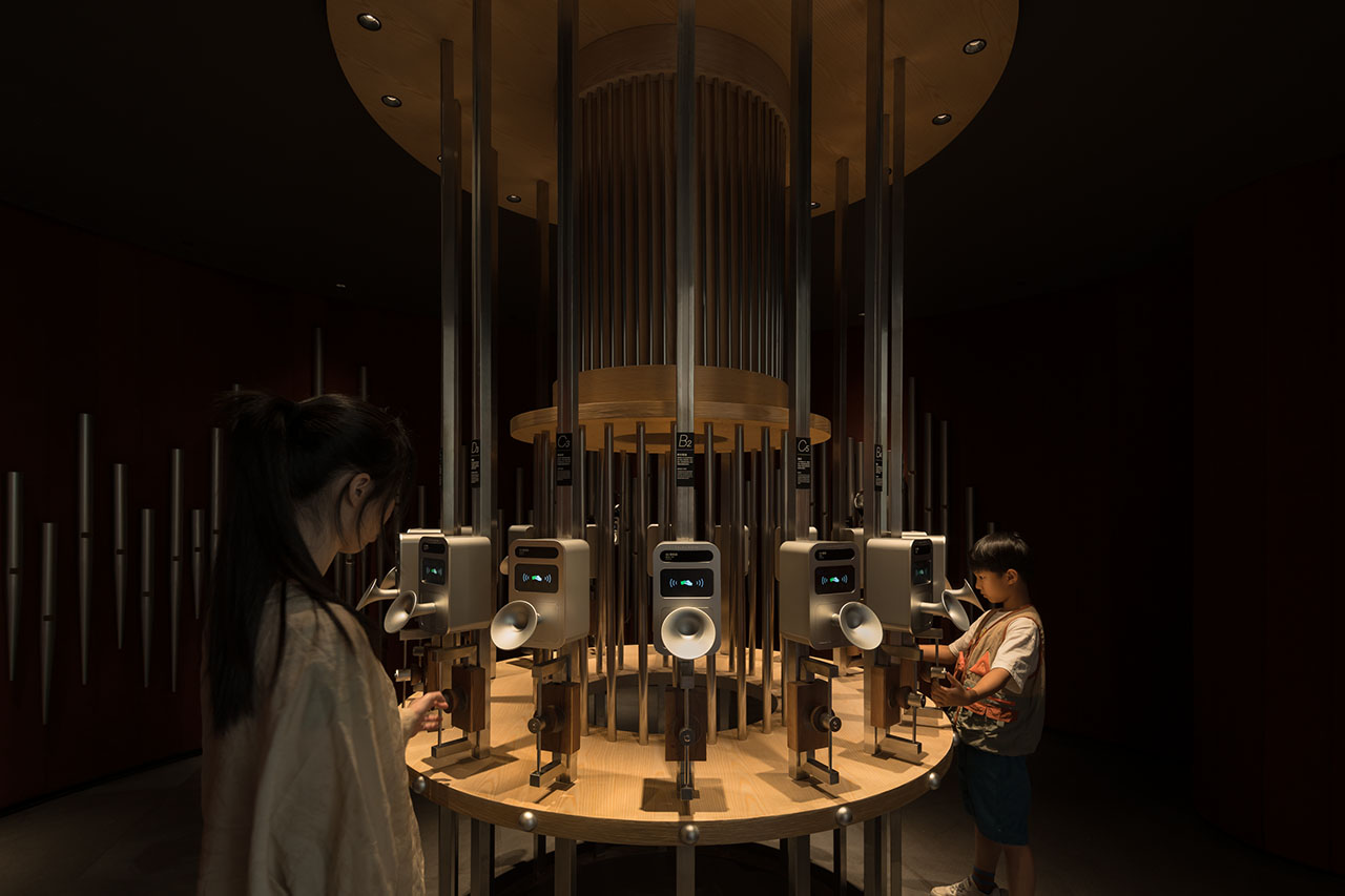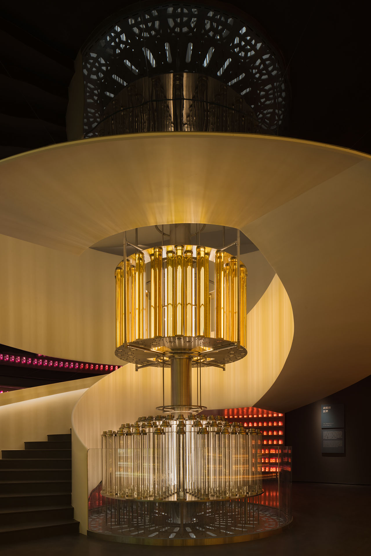 「这件AI调香装置将视觉体验与互动成果贯穿博物馆。垂直香精罐融入旋转楼梯,在光影中构成楼梯间的立体艺术。观众参观时产生的闻香数据被汇集至一楼调香机器,最终制成专属香氛,让参观体验凝结为实体记忆。」