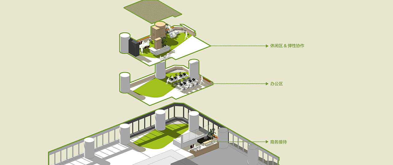 传统制造业的生产导向曾塑造了封闭、层级化的空间形态,而设计的创新并非对过去的否定,而是对传统协作基因的升级。本案延续了传统制造业对“人”的重视,自然光线与绿植体系为办公者构建生态场域。这种转变,本质上是对“以人为本”传统的创新演绎。