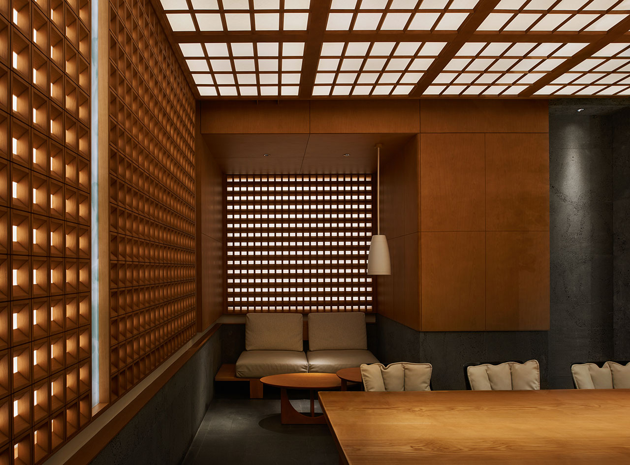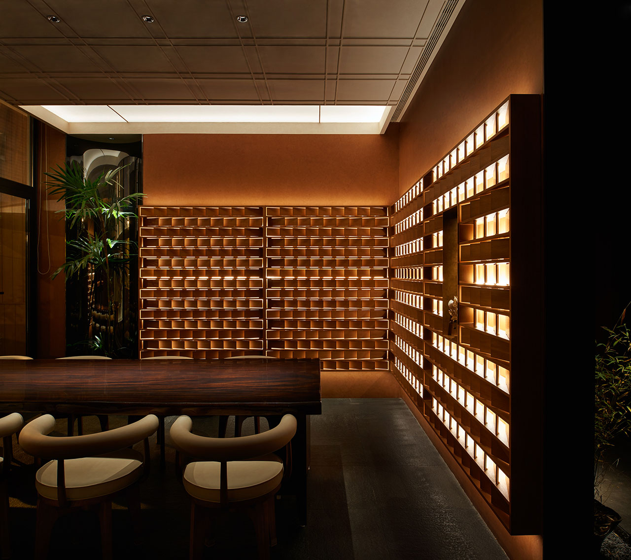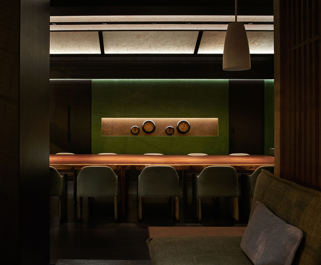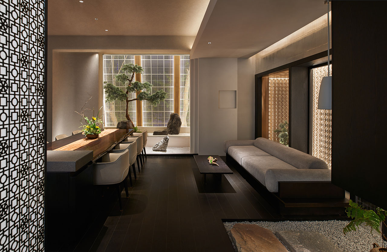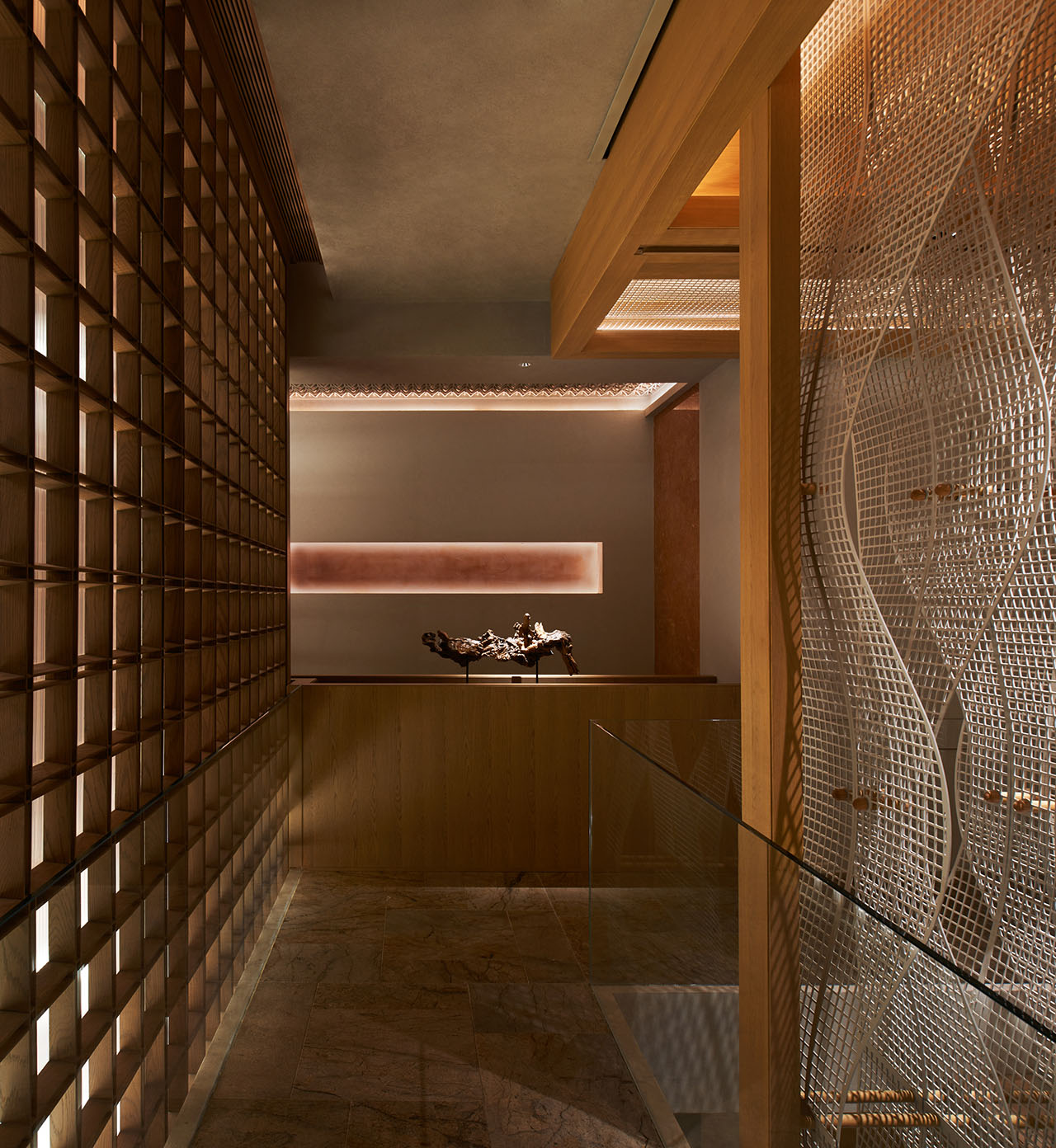 我们将日料餐厅“杉木SUGIKI”打造成城中之外、远离人烟的山林世界,食客在“林水泉石”之间感受东方美学的独特语境。