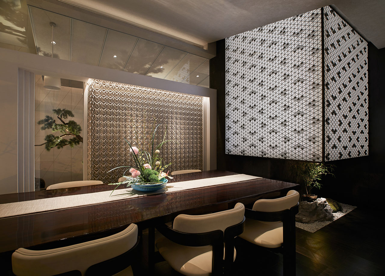 餐厅公区融合景物意向,构筑遥隔相望的“登山之景”。餐厅包间风貌各异,精繁丰富的日式元素经过新的组合,诠释四季之美。