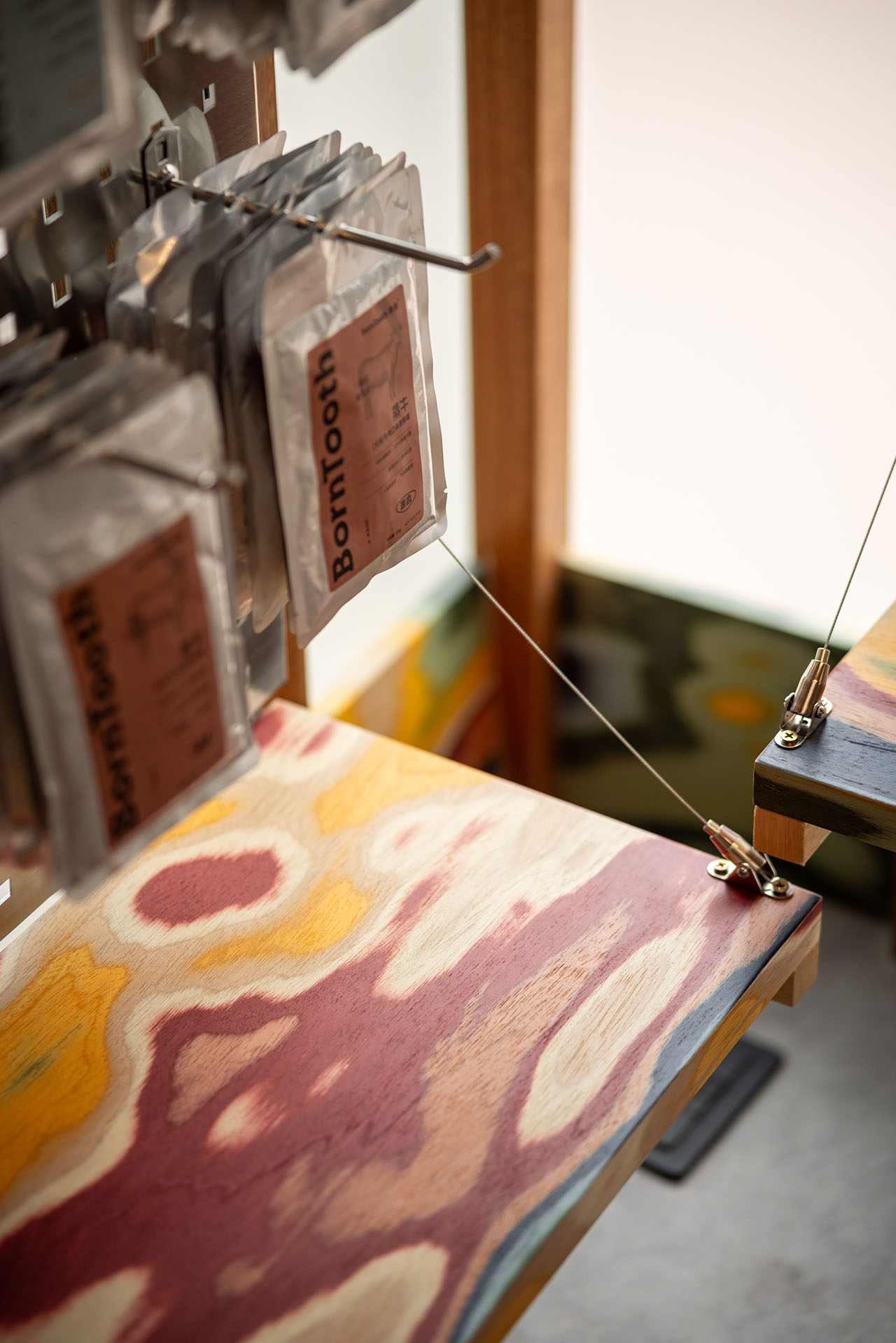 建构的方盒子,我们希望是轻巧且灵活多变的,材质以工字钢和木构为骨架,搭载透明PC波浪板,彩色的搁板则增添几分可爱俏皮。压低的顶面与下沉的地面共同作用,强化了盒子空间的体块和边界。