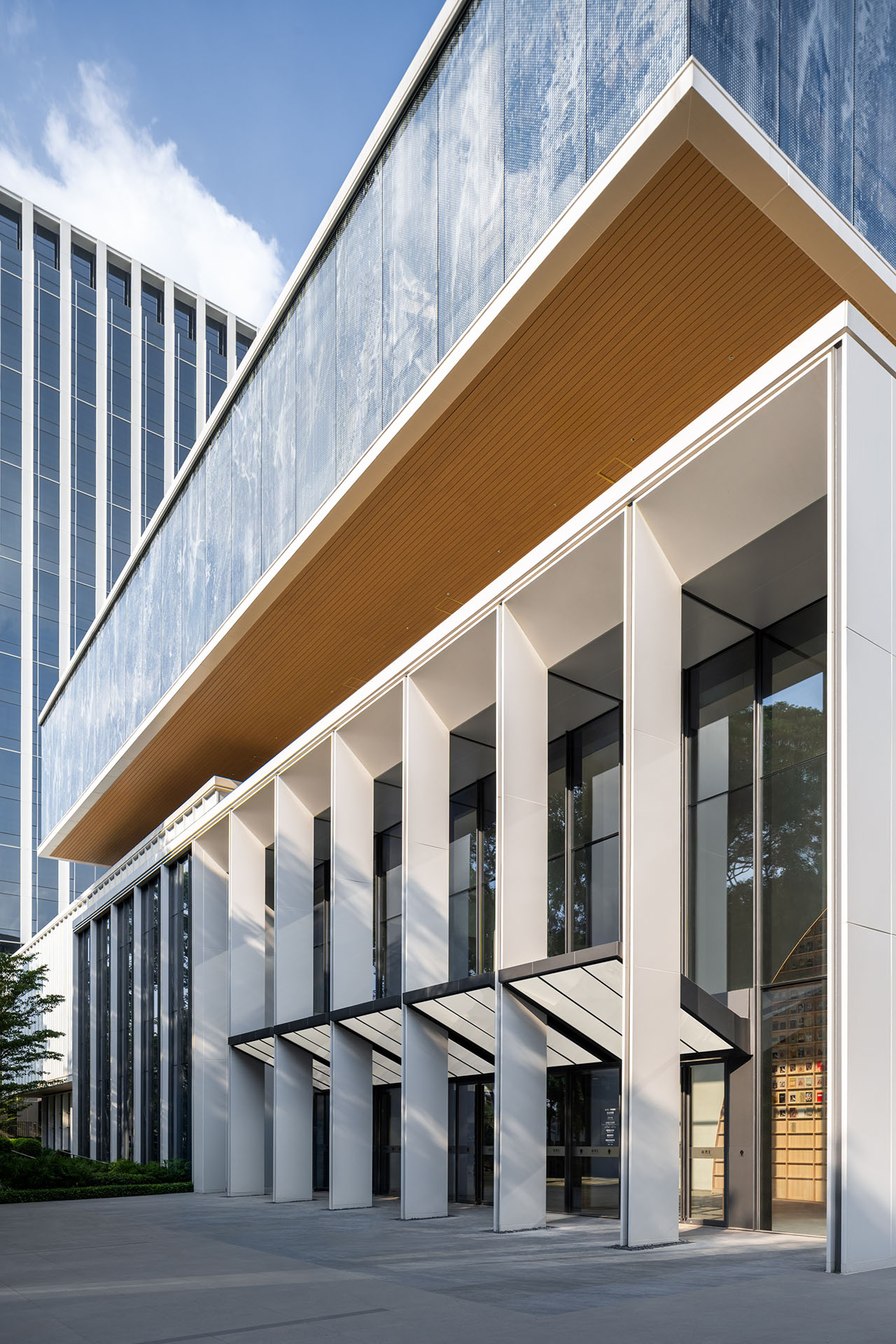 整体建筑有大量自然光通过竖向天井与透明的流线空间深入室内,营造出明亮、健康、宜人的工作环境。白色铝制立面与细长竖向遮阳肋片共同过滤阳光,确保用户在亚热带气候下使用的舒适性。这些建筑共同展示了深思熟虑的建筑设计如何在回应业主诉求的同时,创造出灵活、高效、以人为本的新一代办公场所。