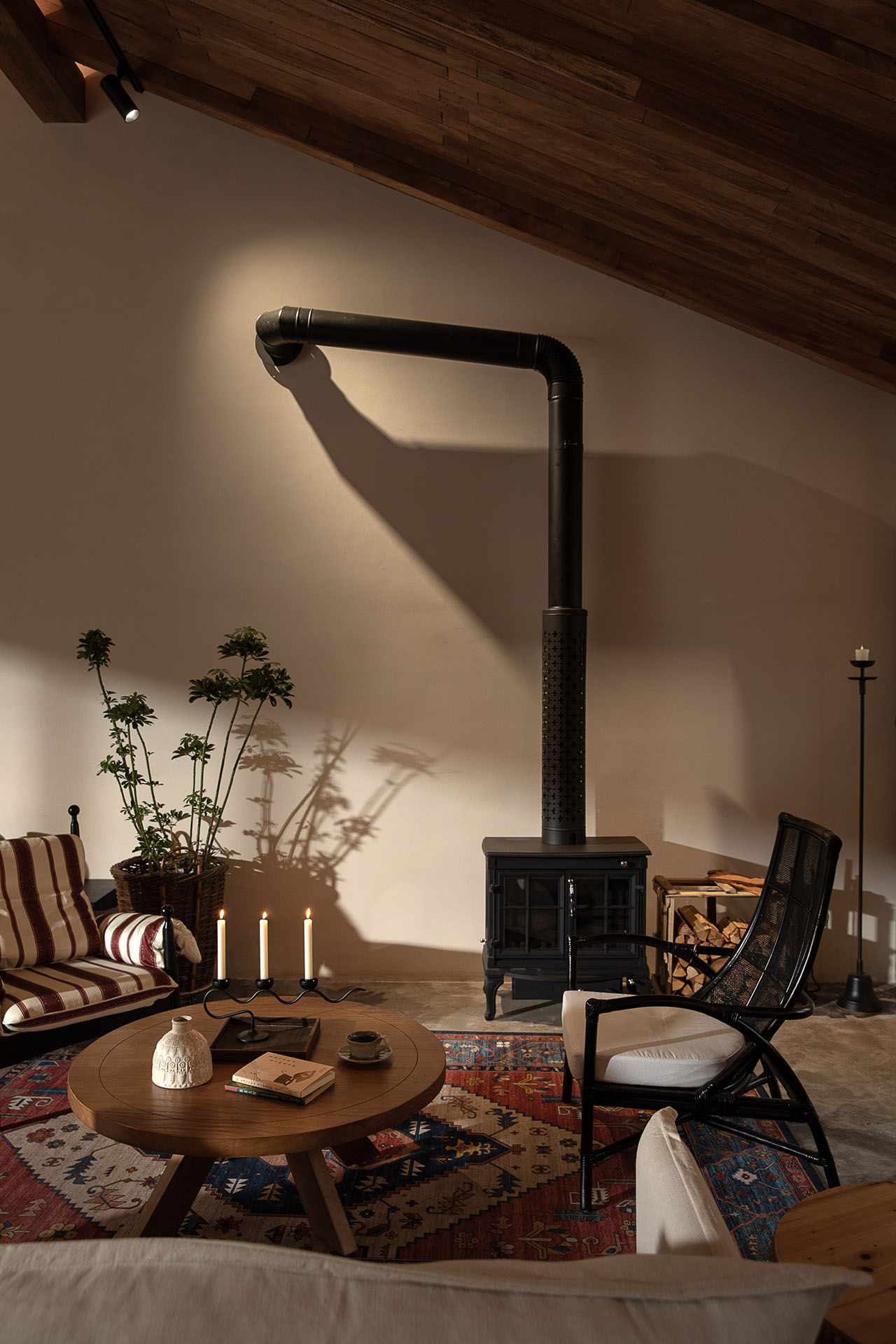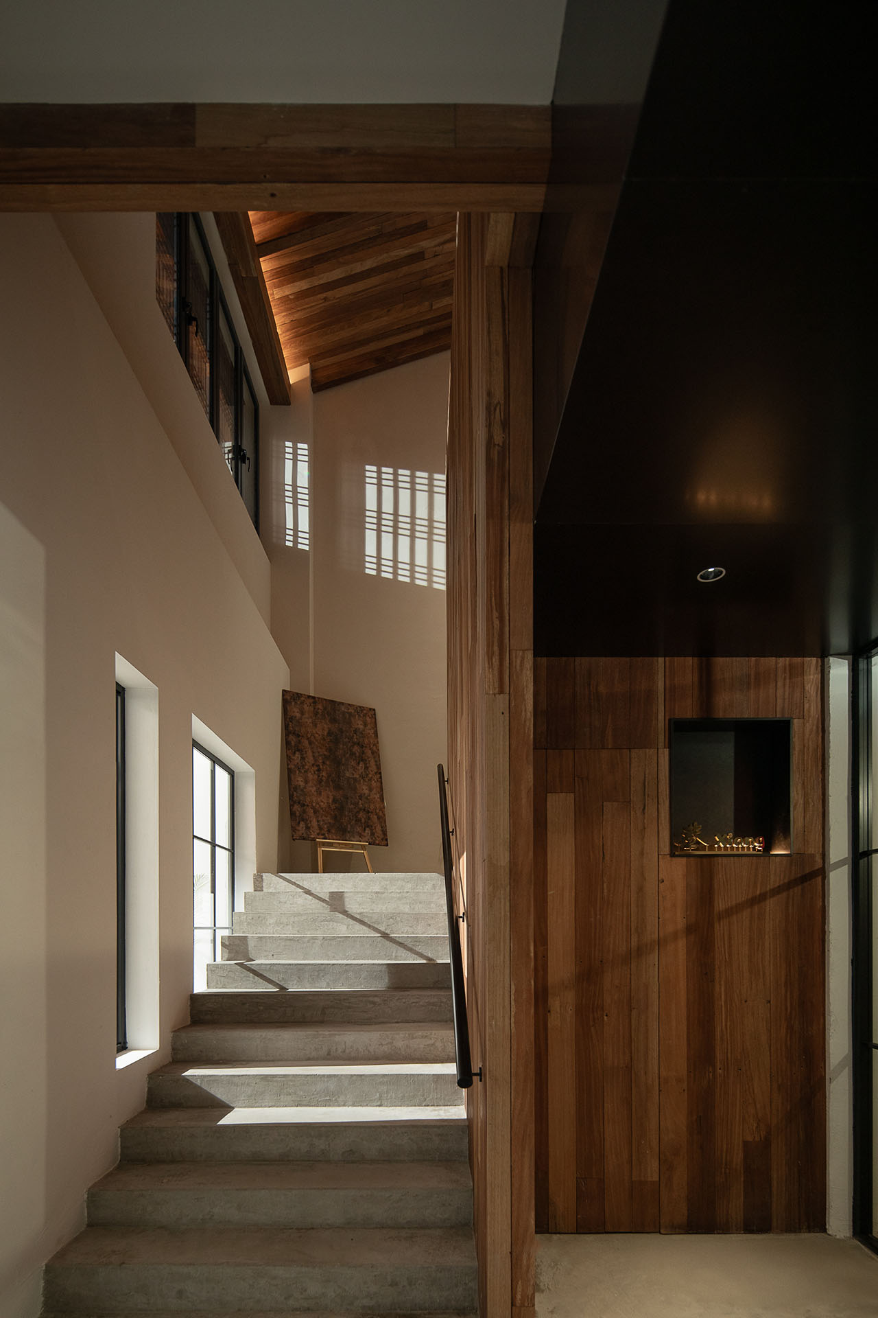 室内延续着木材的温暖基调,保留修复后的木格栅窗成为空间与光的媒介。当日光透过格栅筛落,与暖色内嵌光源温柔交织,于墙面共绘出一幅流动的光影画卷。这由材质与光线共筑的包容性场域,以其静谧而开放的气质,将空间升华为一座迎接所有体验者的精神栖所。