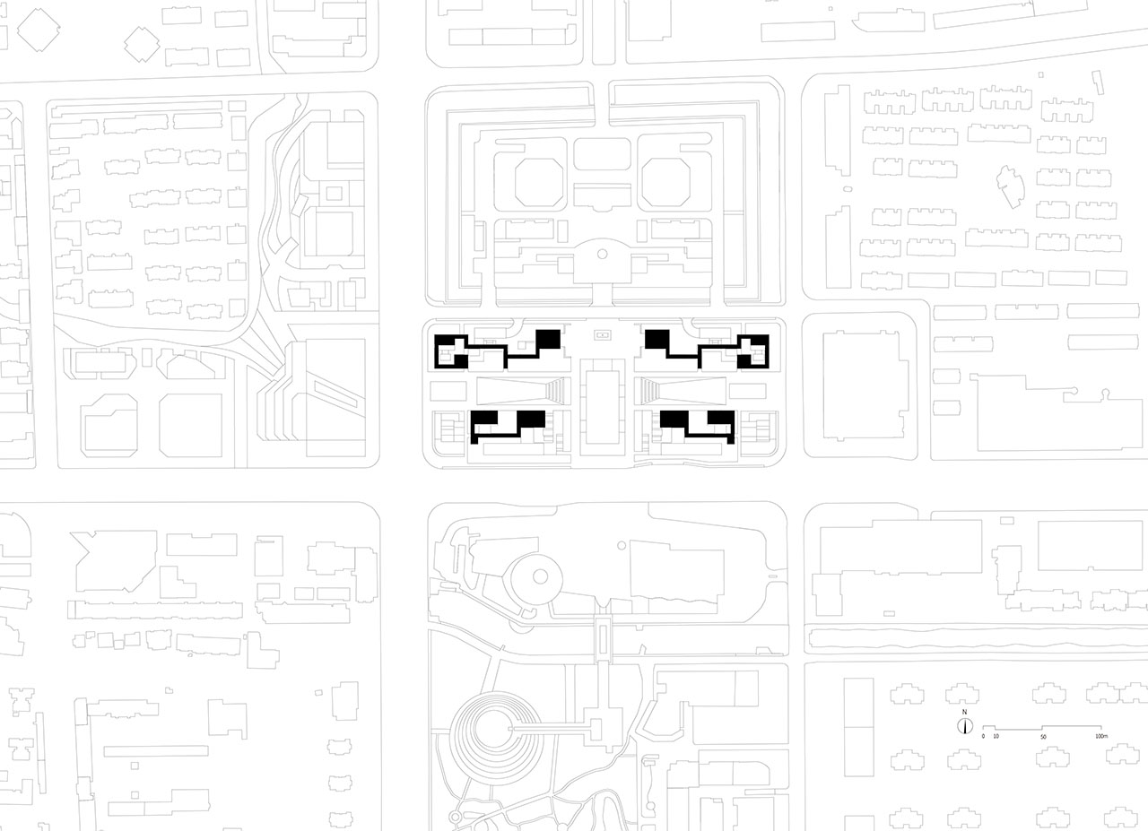 城市性是我们实践中的关键词,即建筑理应为城市做出贡献,试图创造或融入城市公共空间系统。我们反对为图形的象征意义而创造的景观,排斥在上帝视角中创造出的图画。城市毕竟是人的城市,景观也是人的景观。项目中我们同甲方一起,谋划实际能被人使用的功能,创造实际能被人使用的广场。