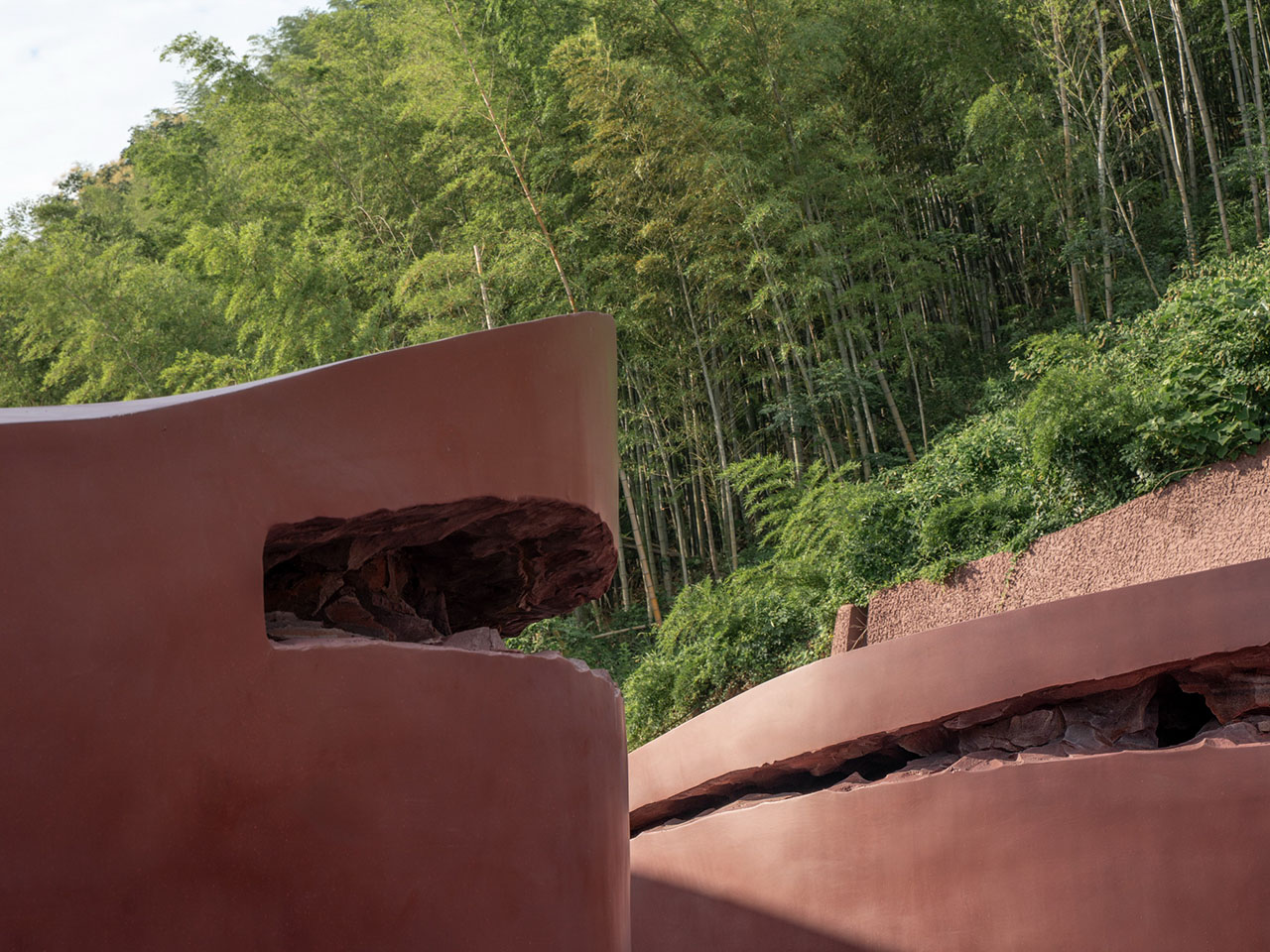 作为文化象征的“陶”具有多重形态:未开采的陶土、可塑的陶泥,以及塑形后的陶片。建造中,雕刻混凝土的结构龙骨通过数控加工控制整体形态,再由工匠在现场进行表面塑形,最终呈现的体量在尺度放大的同时保存了陶器的独特质感。