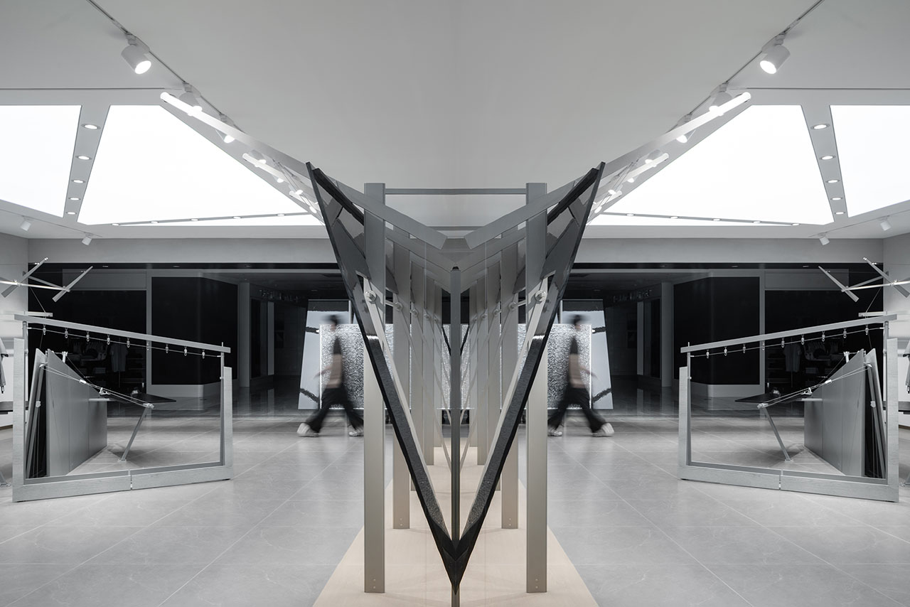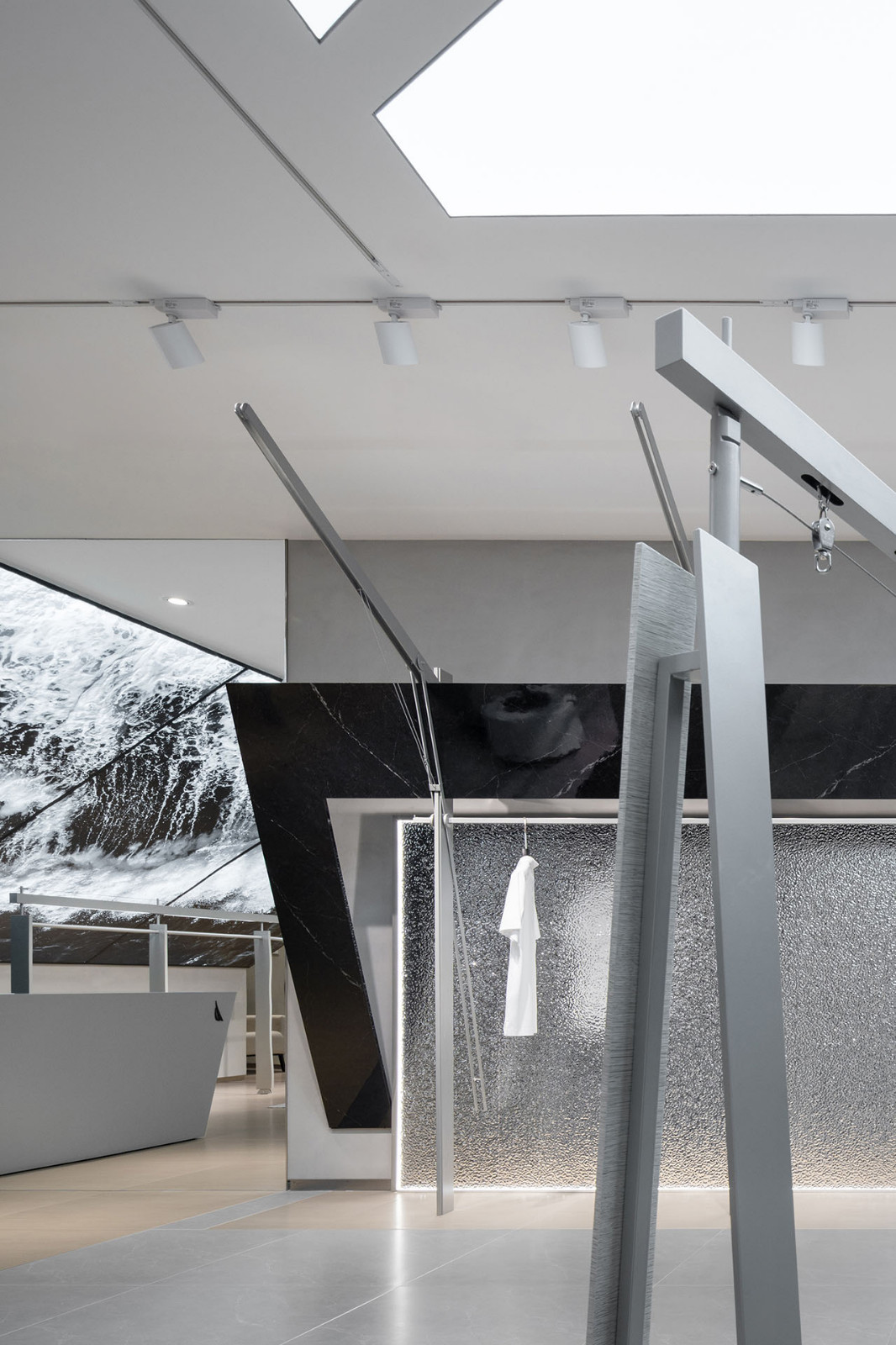 项目的核心挑战在于如何为兼具功能性与潮流性的 BLACK LABEL 系列,建立一个兼具高度品牌辨识度与落地效率的空间系统。SLT 以“大航海之梦”为题,将“帆船”作为空间原型,进行抽象化、建筑化的转译。