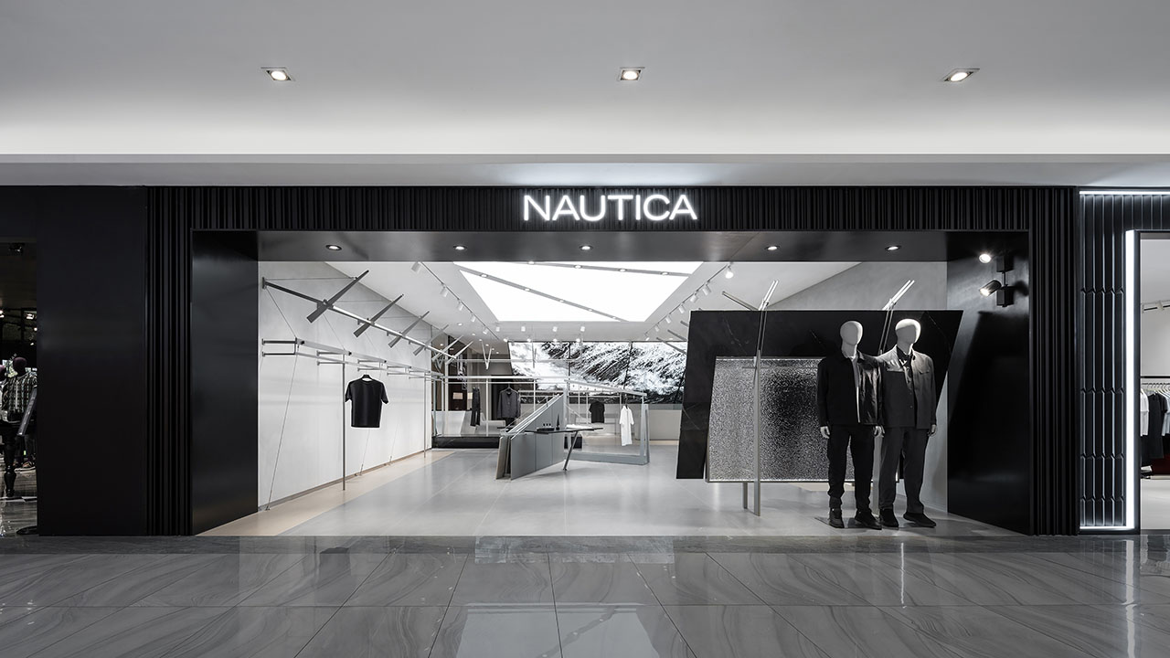 SLT 再次携手美国服装品牌 NAUTICA,为其黑标 BLACK LABEL 新系列打造空间形象,首店坐落于长春欧亚商都。设计超越航海符号的表层运用,通过一套严谨的模块化系统,将“帆船”的基因转译为当代、可复制的空间语言,塑造自由、冒险与自然感并存的零售场景。