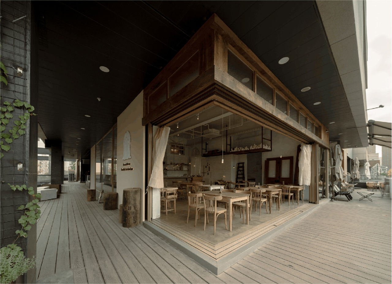 空间位于一个低密度商业二层,朝向大片绿意。我们顺应原始结构,将窗景完全打开。阳光穿过绿荫进入屋内,满是自然的色彩。