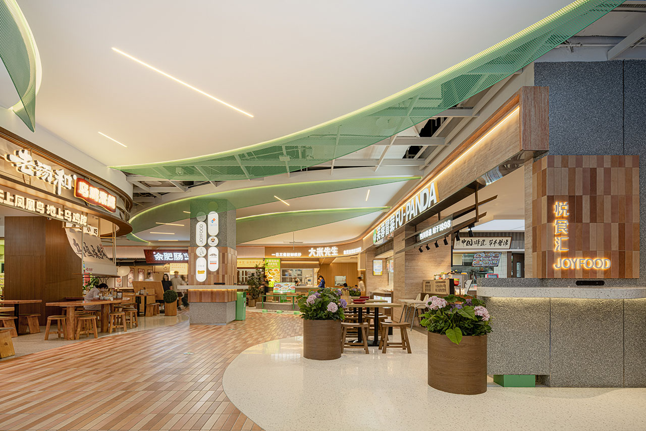 成都大悦城运营已近十年,随着品牌迭代更新,启动了 “悦食汇” 食集空间改造项目,落位于成都大悦城四个主题中庭之一的春中庭。作为商场新增的食集空间,需满足品牌更新入驻及当下空间功能需求。项目改造总面积约 1500㎡,其中公区面积 480㎡,是本次设计的重点区域。