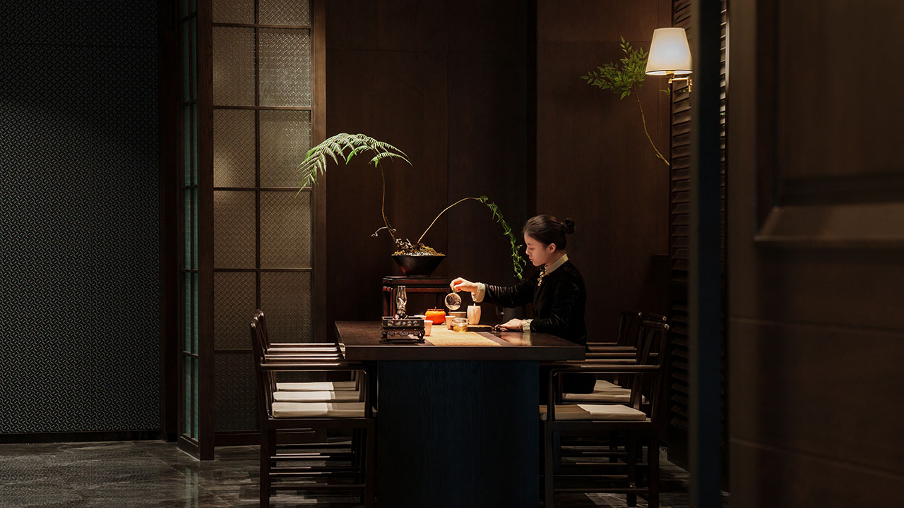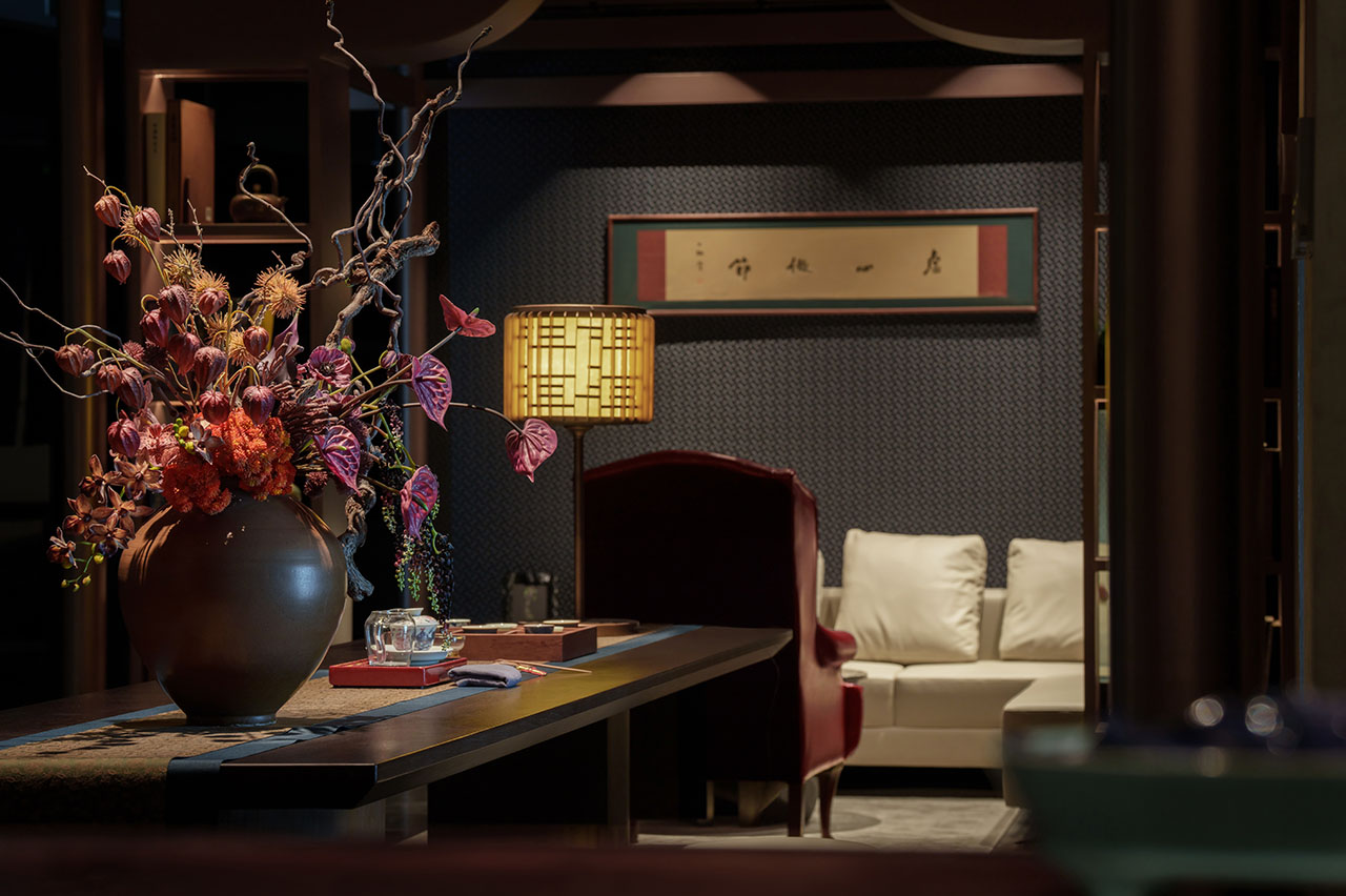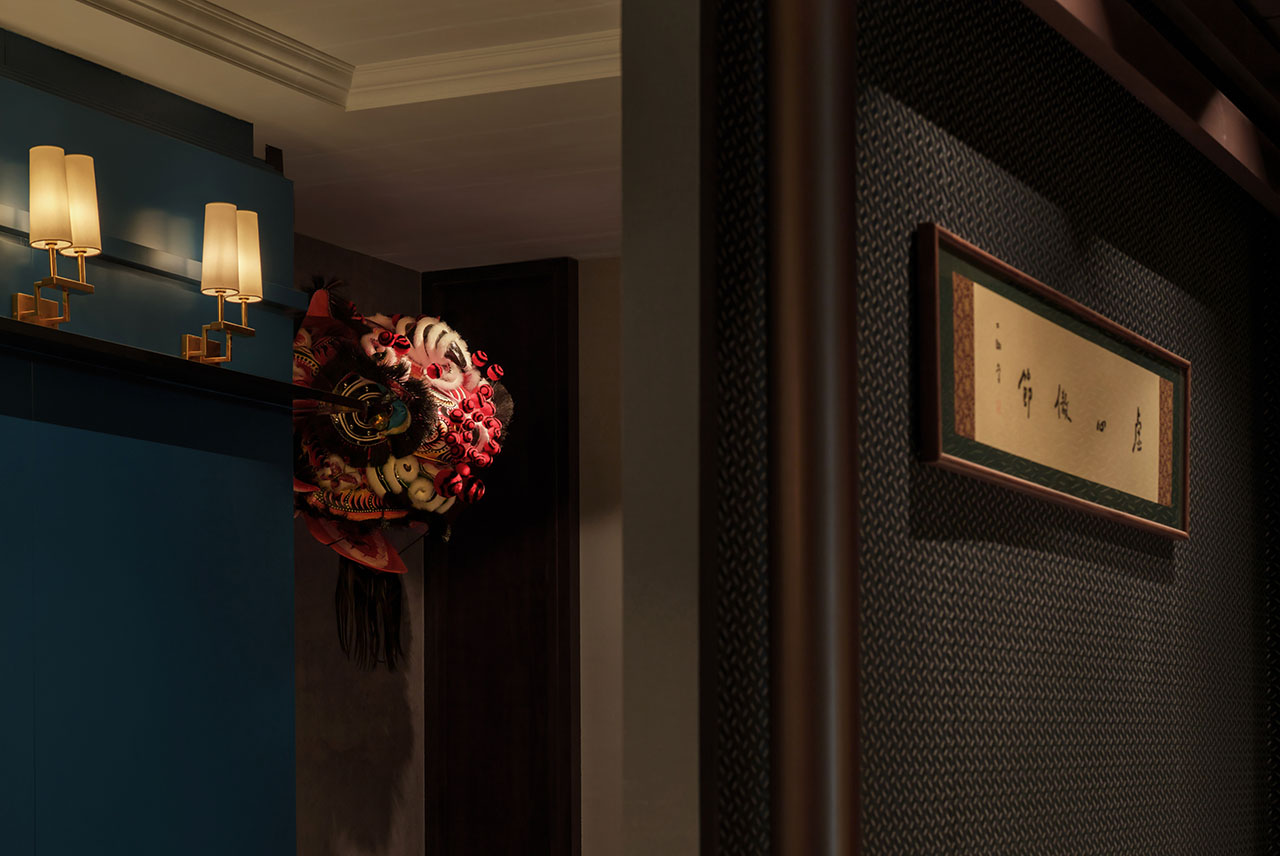 设计伊始,便着意于营造心理转换的仪式感。拉长的入口动线借鉴了苏式园林“曲径通幽”的经典手法,通过空间序列的延展与节奏控制,引导宾客逐步脱离外部城市的喧嚣。门厅区域巧妙运用温度与光影的双重设计,形成感官上的缓冲地带,使宾客在行进中完成从“市井”到“秘境”的心理过渡,为后续的沉浸体验奠定基调。