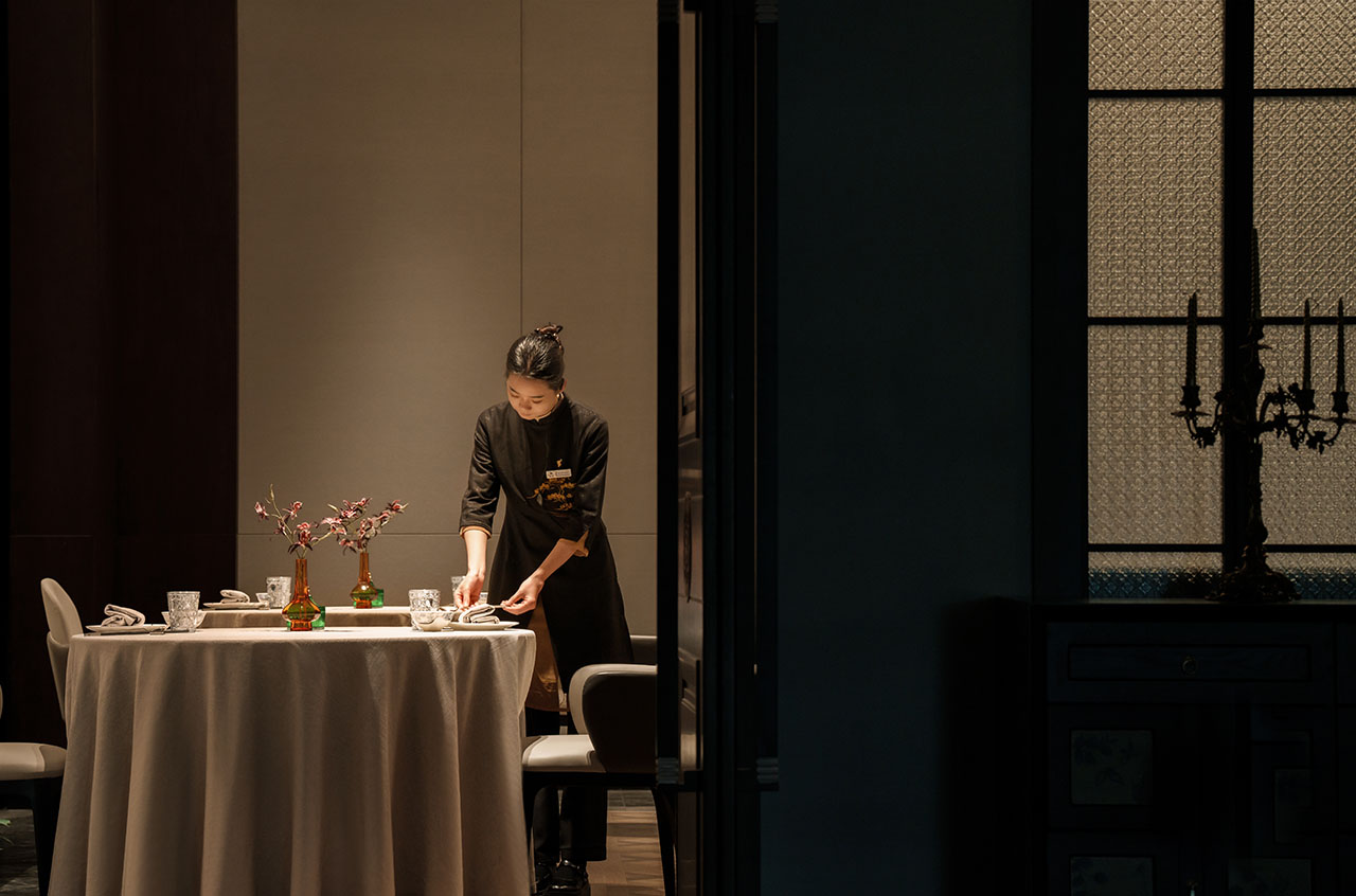 “融荟”餐厅,首店为吴粤轩,二店择址于园区生态核心,坐拥金鸡湖景。其定位精准而富有远见:根植于千年姑苏古城的深厚文脉,同时面向并辐射以上海为核心的长三角国际化客群,旨在打造一所“面向姑苏人群、辐射长三角的海派风尚餐厅”。这不仅是一个餐饮场所,更是一个承载文化对话、展现时代风尚的复合空间。其核心理念在于将粤式餐饮的精工细作、苏工技艺的匠心独运,与海派文化海纳百川、兼容并蓄的特质进行创造性融合,在江南传统的沃土上,巧妙嫁接西方现代元素,并通过空间叙事将这种深刻的文化融合转化为可感知、可沉浸的体验场景。