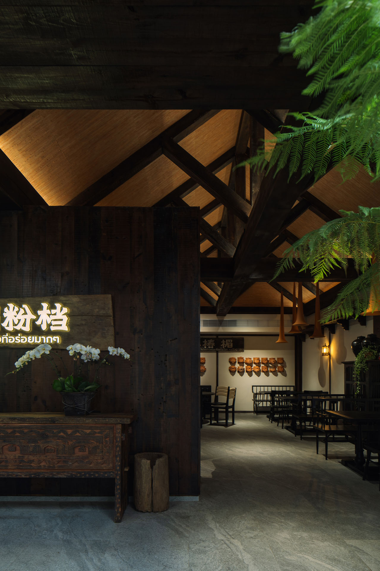 汤底熬煮的声音、升腾的热气以及草本、辛辣与酸香在空间中自然扩散,与植物、木构和空气流动交织在一起。
