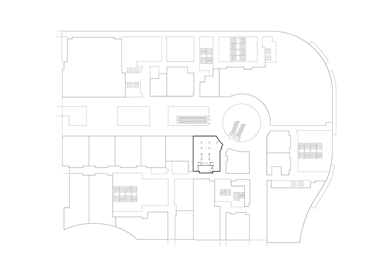 东方传统木构讲究家具与建筑构件的统一逻辑。店中的坐具通过榫卯方式卡入混凝土柱绌,使家具成为结构系统一部分;挂衣杆则预先在柱上开卯口,再将金属杆以卡榫方式嵌入,形成尺度由大至小而语言统一的建造体系。