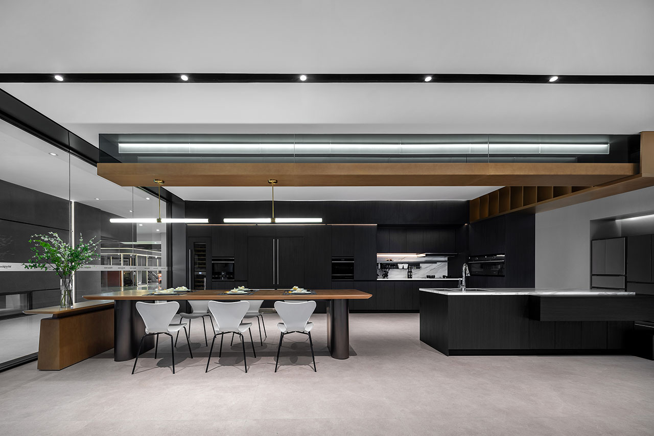 厨房区与餐饮区无缝衔接,展示家电在日常烹饪、社交聚会等场景中的应用,带来“厨房即生活中心”的氛围。