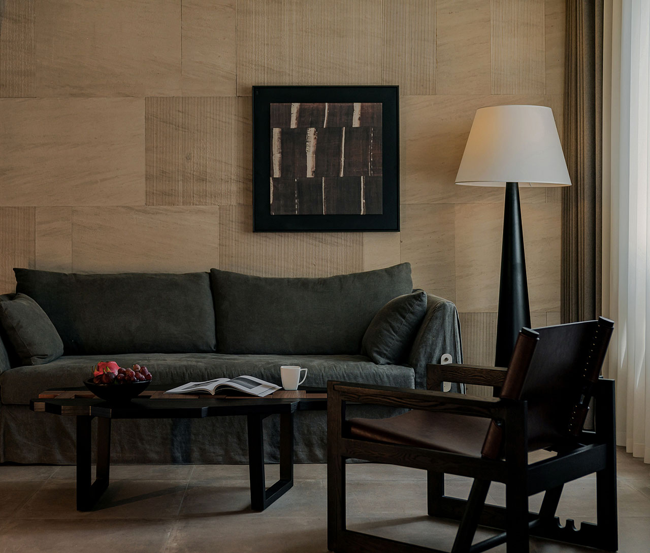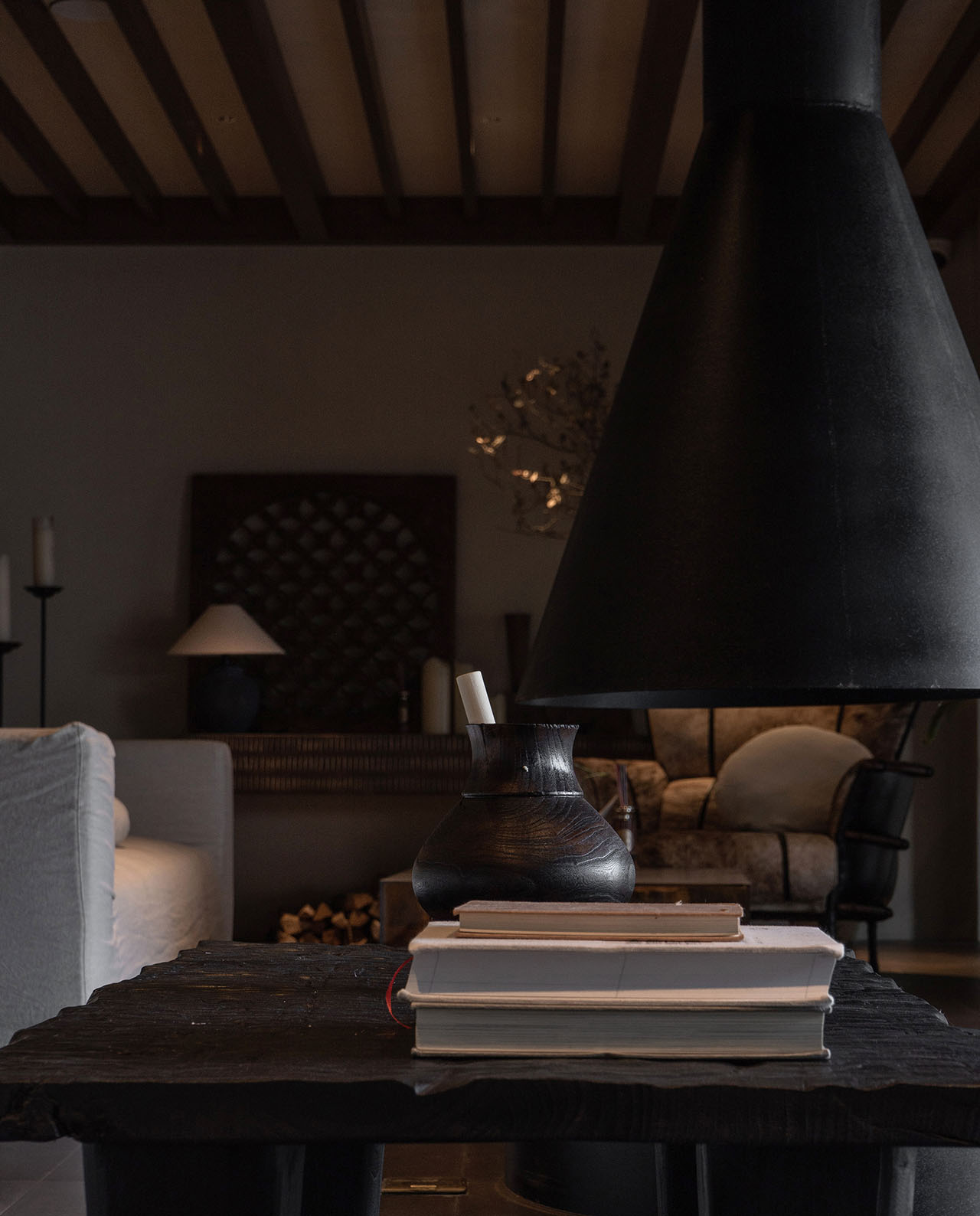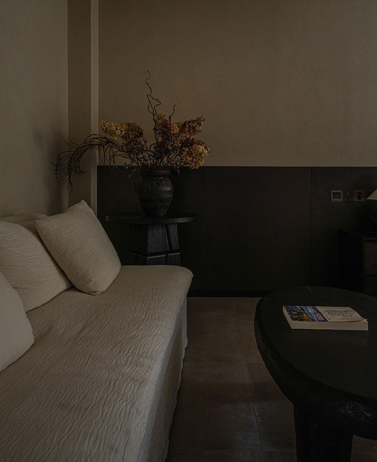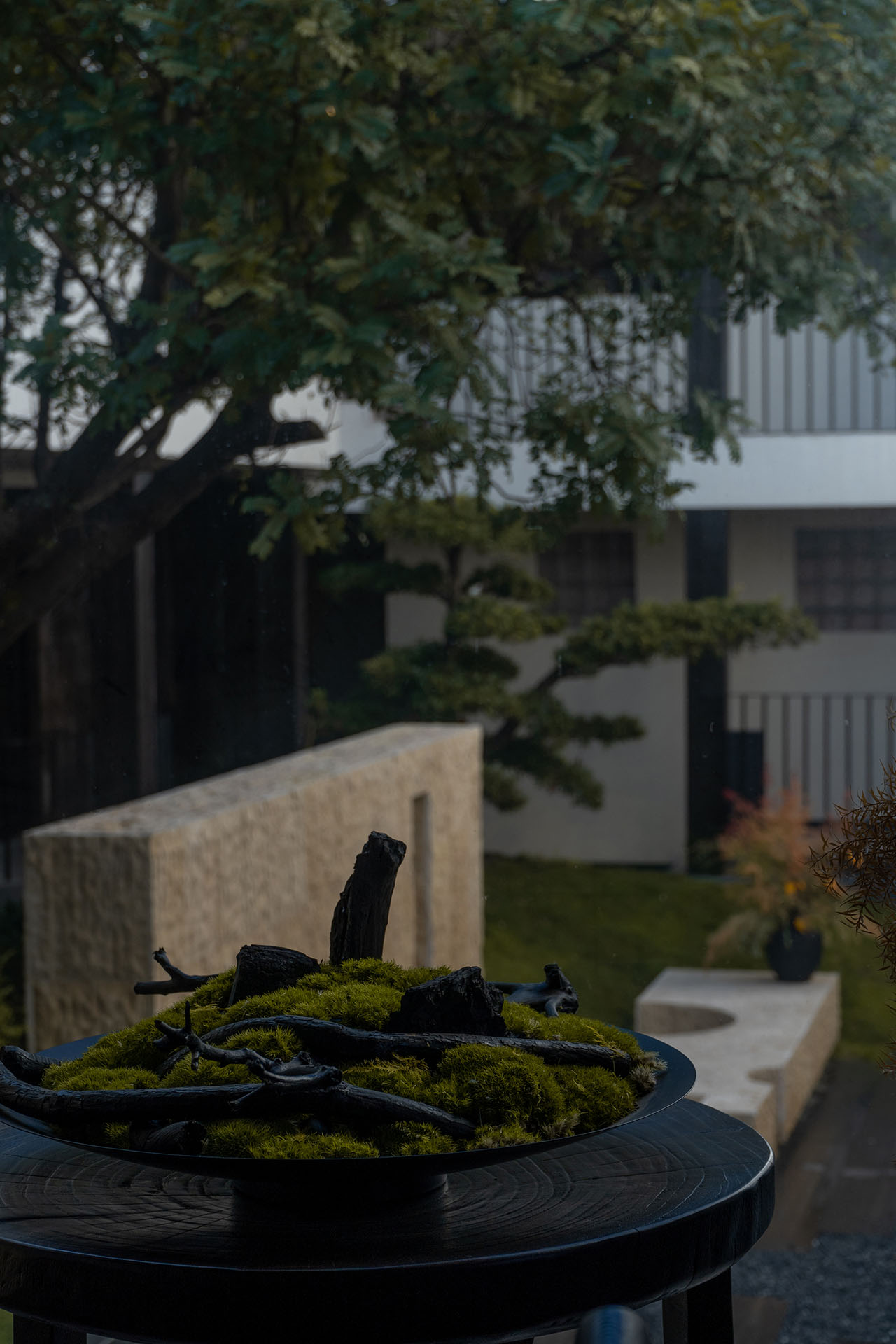 二层北面,正对茶室和内院花园的位置,我们设了一个休闲区。没有把它做成需要测算商业回报的功利空间,而是像从前大理古城里随处可见的石凳、水景、歇脚处一样,起到调节冗长走廊的作用。人可以随意进出,小坐、阅读、茶,或者围炉夜话。