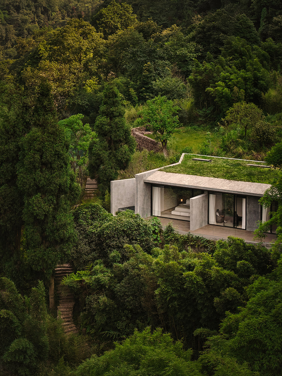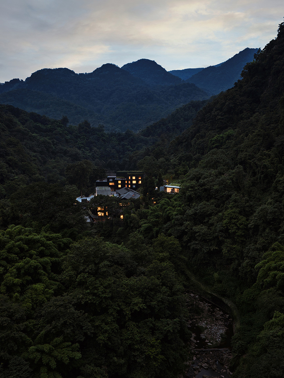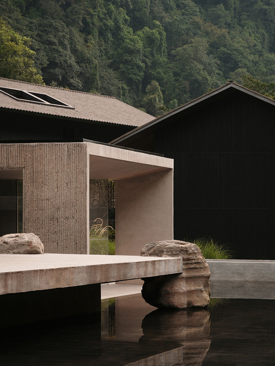 建筑设计从场地地形与传统文化中汲取灵感。整体布局以错落有致的村落式形态展开,呼应依山而建的石屋聚落。传统坡屋顶与深挑檐被重新演绎,以当代语汇连接过去与现在。通过“景观优先”的设计策略、克制的材料选择,以及对传统与现代的诗意融合,让岚域·峨眉山度假酒店不仅是一家酒店,更是一处让人感知“静谧”的场域——在这里,人们得以沉思、放缓节奏,并与土地重启对话...