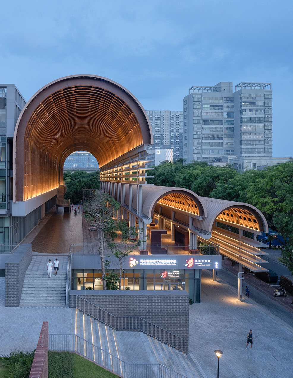 场地位于坪山区坑梓街道光祖公园西侧,光祖南路东侧,吉康路南侧,丹梓东路北侧。场地分为南北两个地块,两地块相距130余米,两地块用地面积总计21543㎡。北地块建筑地上6层、地下二层,功能包括坪山区科技馆和书城,南地块建筑地上8层、地下二层,功能为坪山区文化馆,两地块之间为光祖公园西入口,地下有兼顾停车和人防的公共停车场。总建筑面积72436.62m2,计容积率建筑面积43176.92m2,不计容建筑面积为29259.70m2...