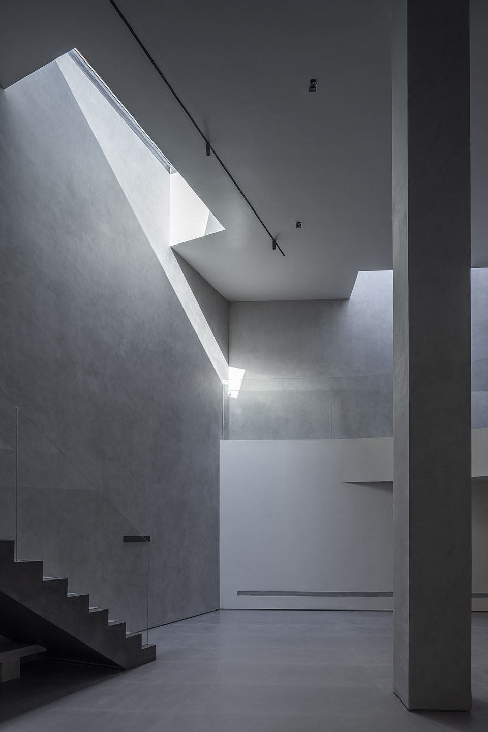 其核心是地下艺术空间,一个灵活、多功能的大厅,绘画、音乐、游戏与展览在此交汇。虽沉入大地,空间却因光而生动。精心设计的采光井将天光深深引入混凝土墙,光影移动的线条记录着时辰与季节的流转。光成为活的时钟,连接地下与天空,在保持温度恒定的同时,揭示变化之美。这里开放通透:大面玻璃与简洁的平面让阳光在房间之间共享,将不同功能融为一种流动的体验。