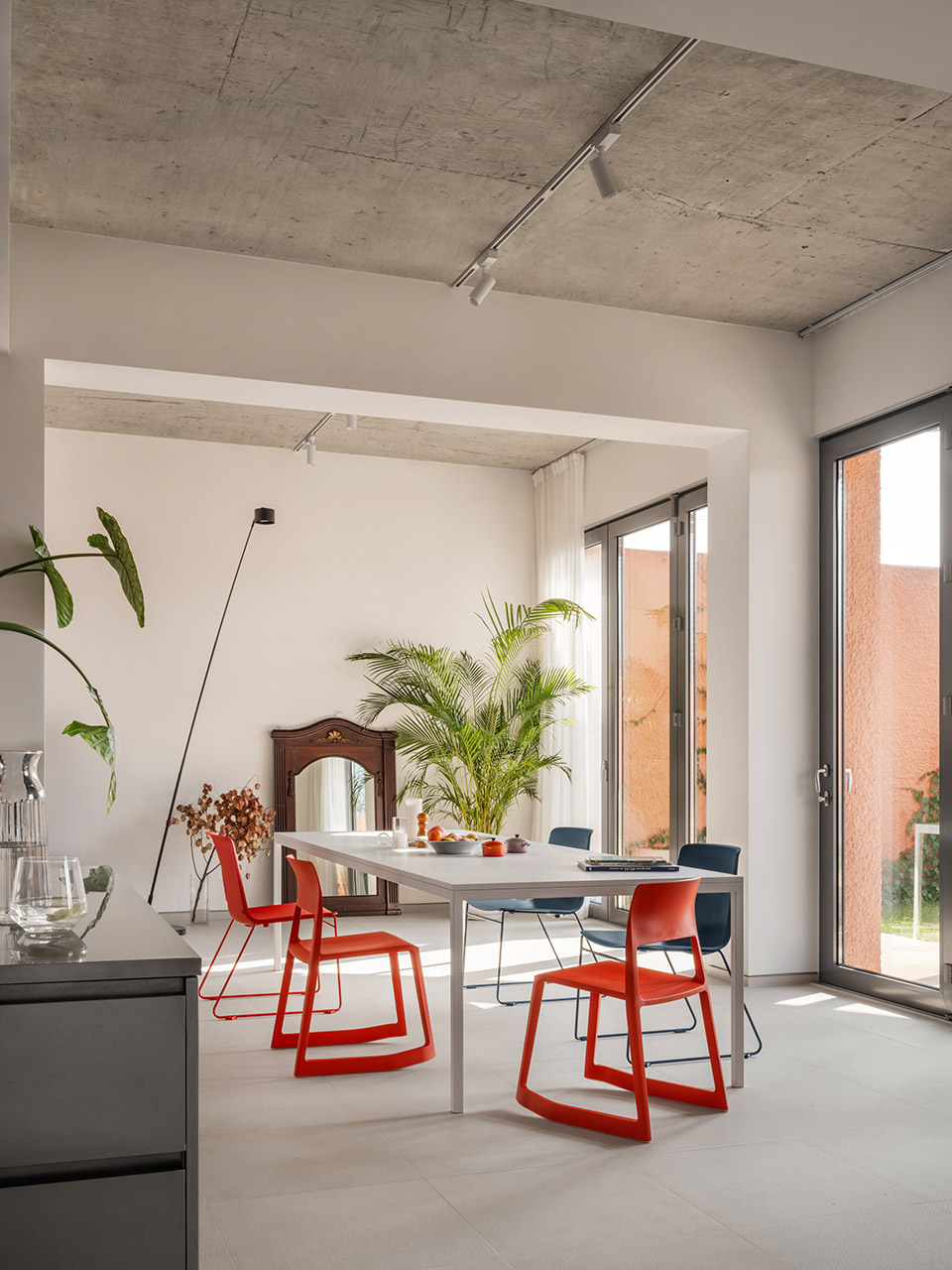 主房内设有一个主卧套房,而位于地块北侧的小房则作为孩子和客人的宽敞生活区。儿童房、客房套房和连接的走廊,可以欣赏到两个小型私人花园的景观。