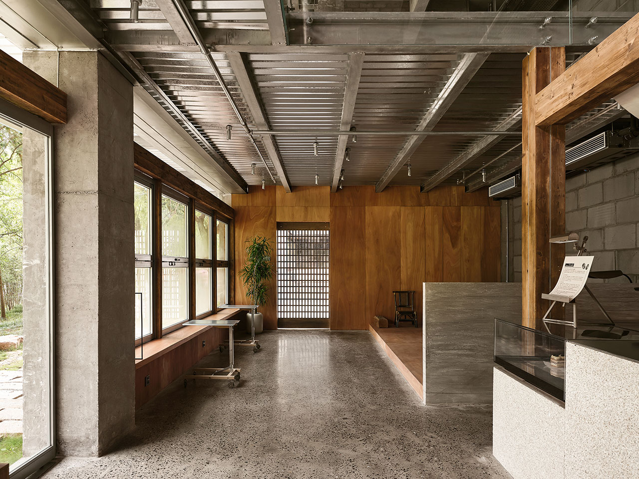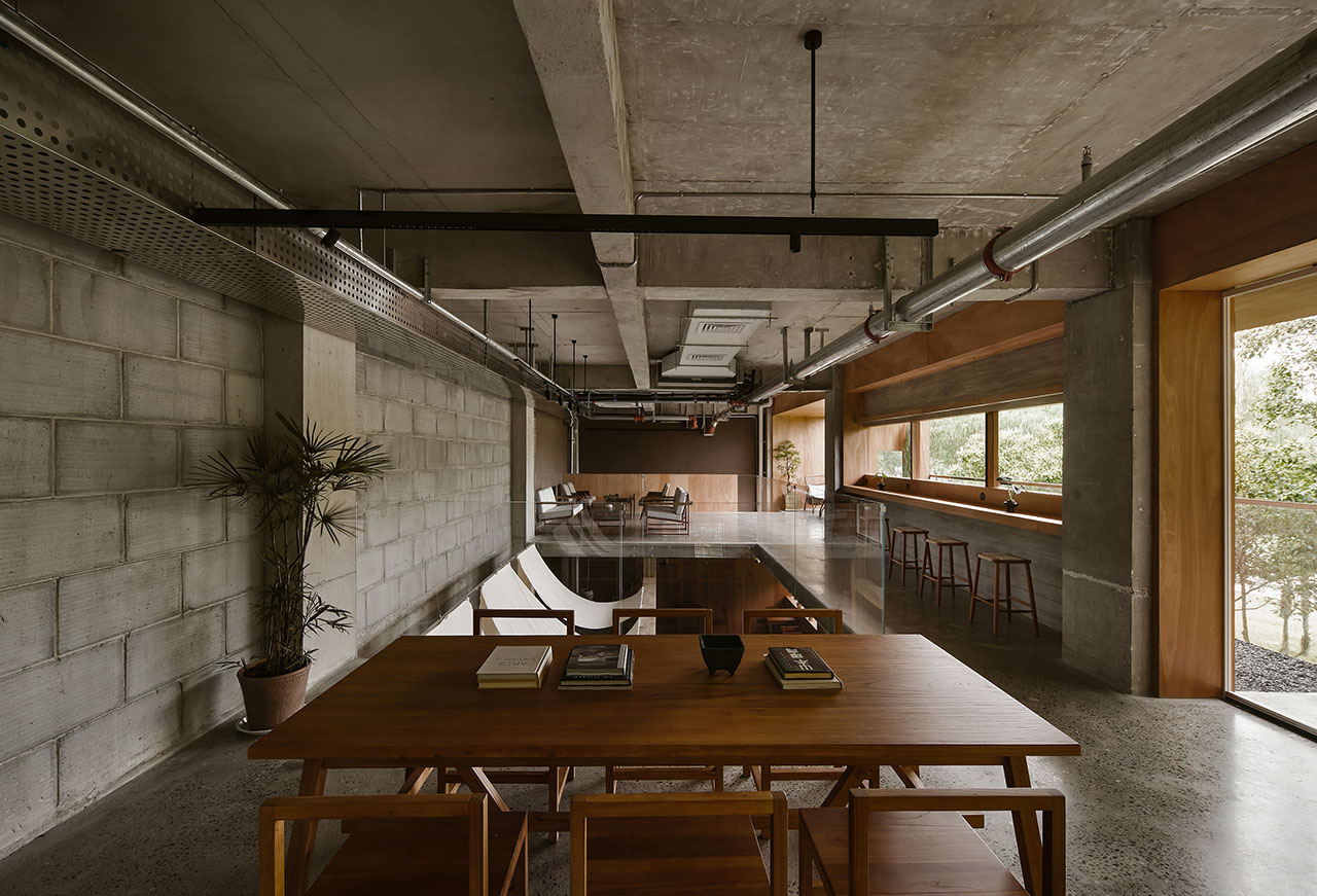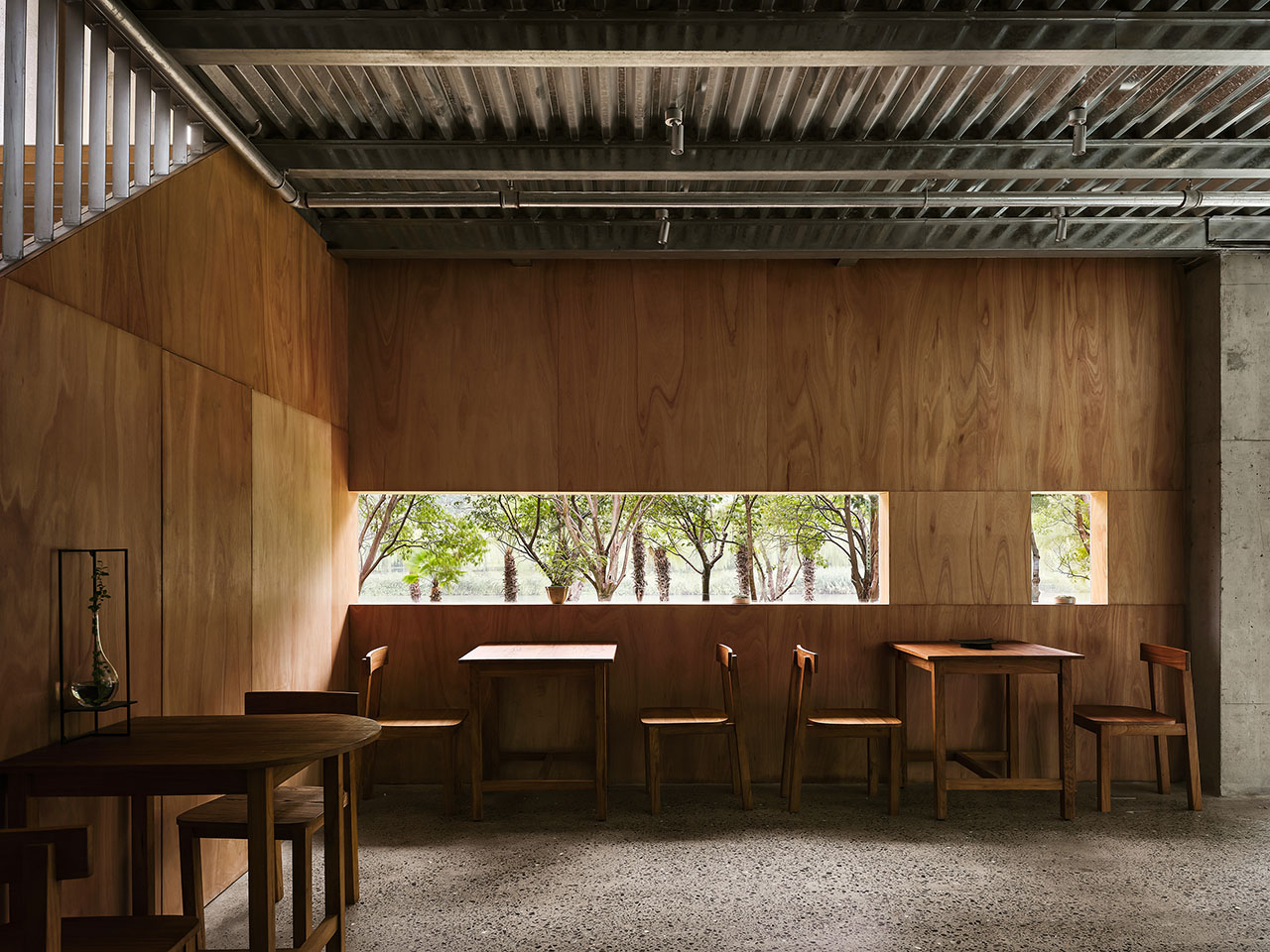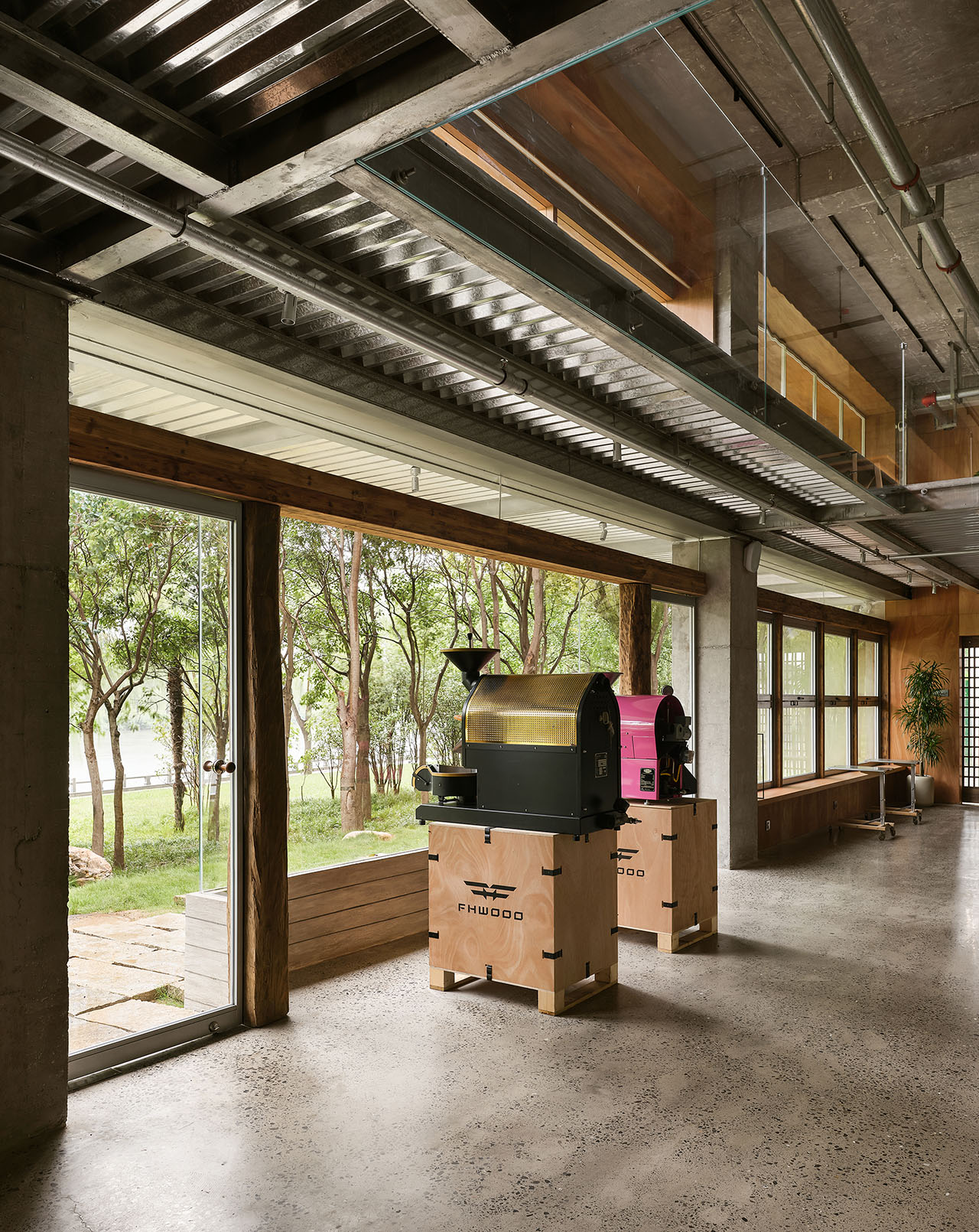 对此咖啡厅的初印象,是因多重材料糅合形成的矛盾反差感。当环顾周遭,继而产生新的印象,融合了木质、混凝土与金属等材料的空间,实现工业气息与人文温度的有序平衡,像是大胆混搭的着装,却出乎意料的协调。